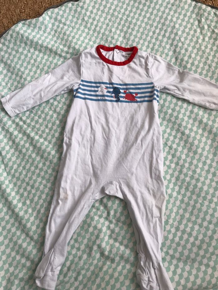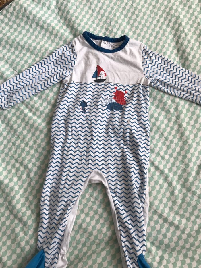 lot de 3 pyjamas grenouillères taille 18 mois, 81 cm. Orchestra. Le blanc est légèrement tachés (voir photo). Portés mais en bon état général #dressing_garcon18mois_oreelii