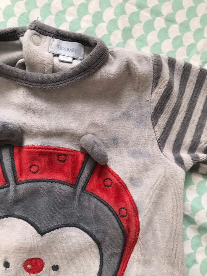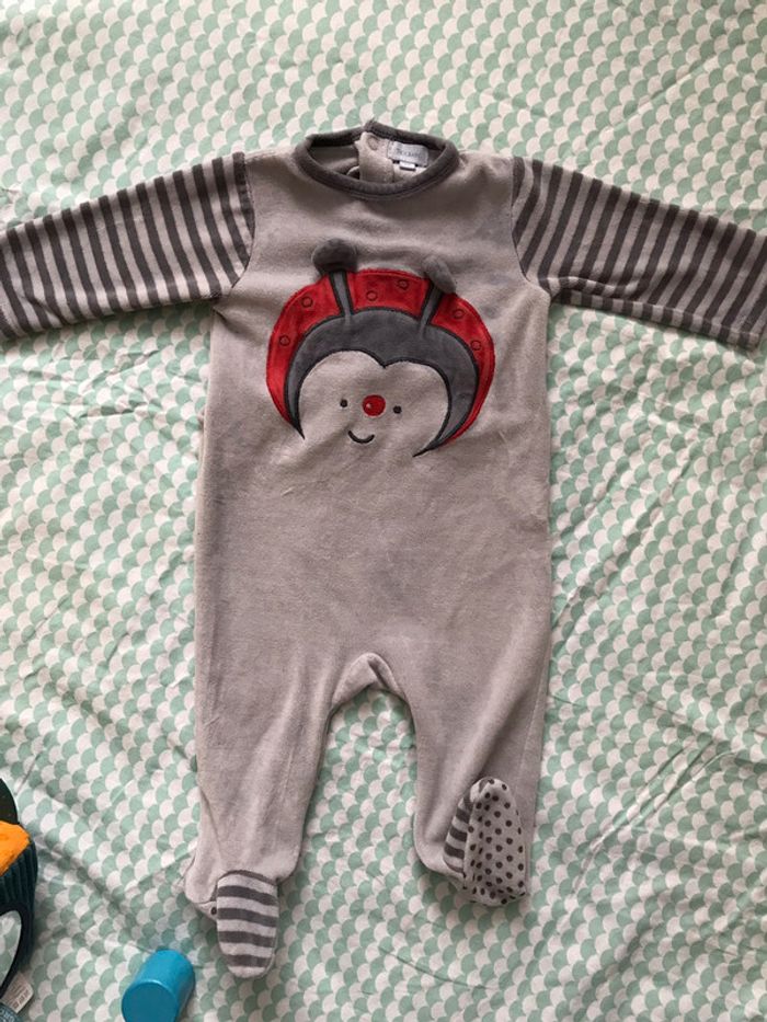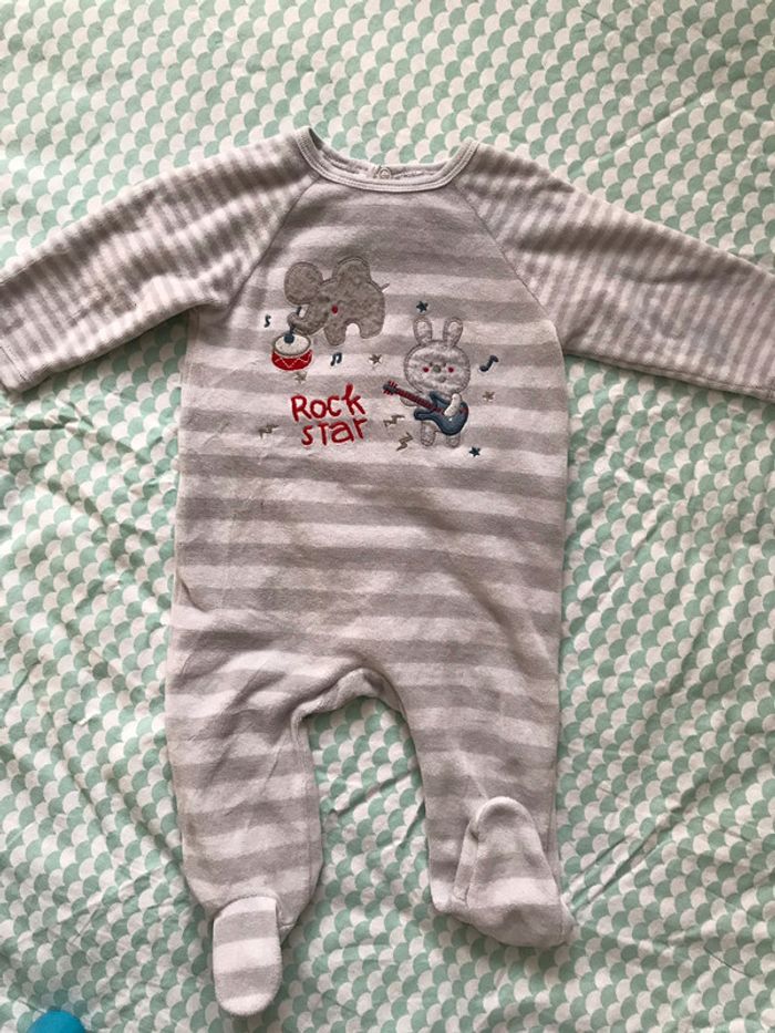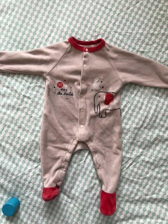 lot de 3 pyjamas taille 6mois, 1 sucre d’orge, 2 tex baby. J’ai eu un soucis lors d’un lavage avec un jean, du coup il y a des tâches bleues sur les 2 tex. Le sucre d’orge est en bon état. #dressing_garcon6mois_oreelii