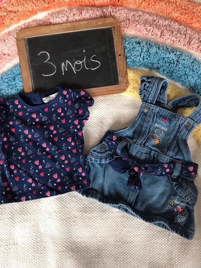 robe salopette jean et t-shirt manches courtes assorti taille 3 mois marque lee Cooper porté 1 fois #dressing_fille3mois_oreelii