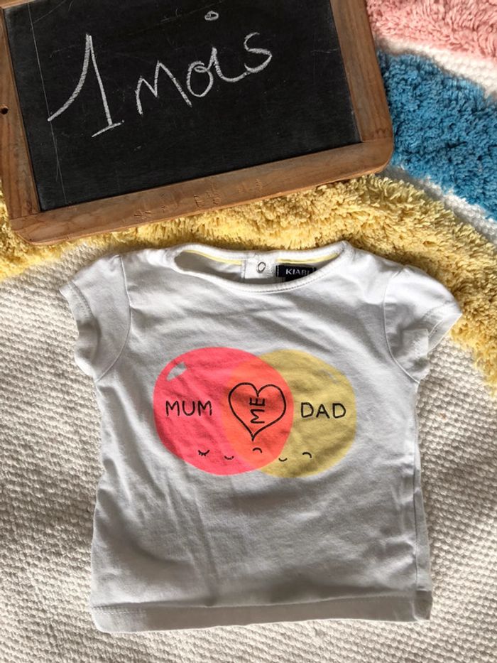 t-shirt dad mum me en parfait état, taille 1 mois très peu porté en parfait état #dressing_fille1mois_oreelii