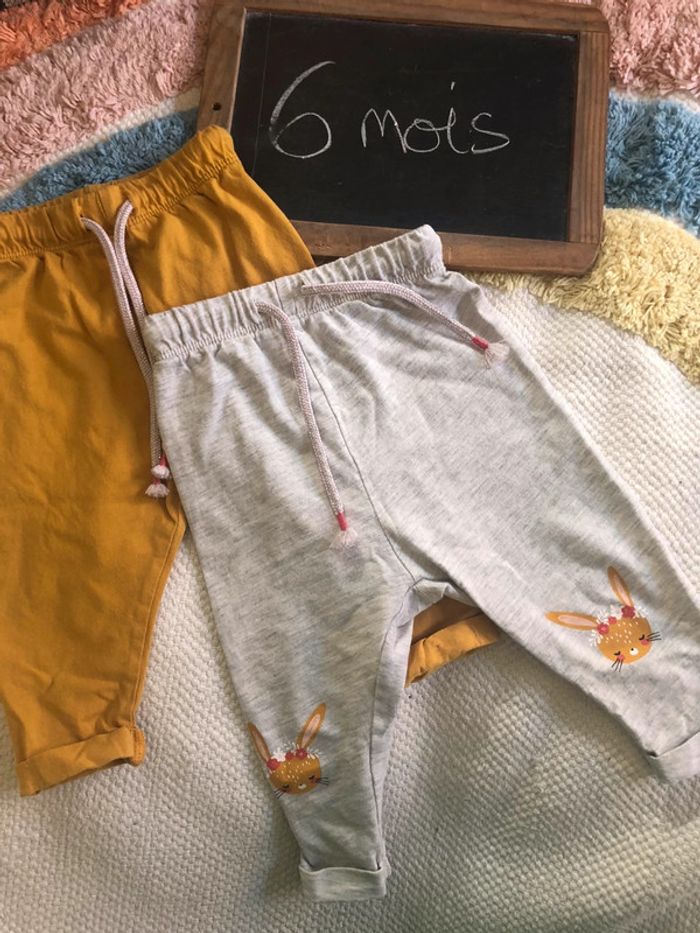 #dressing_fille6mois_oreelii Lot de 2 pantalons légers en coton. Ceinture élastique et cordon. Comme neuf, marque inextenso