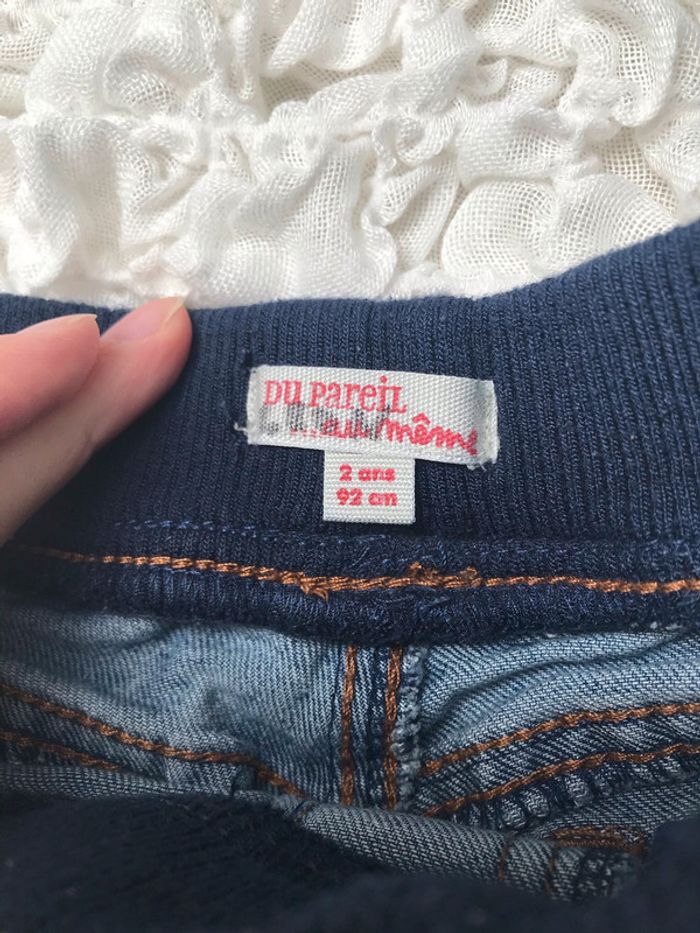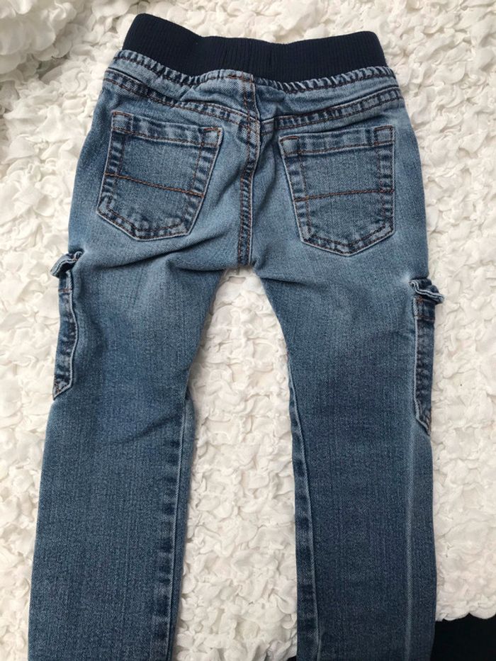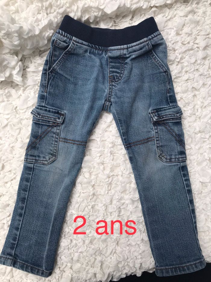 jean poches genoux marque du pareil au même, bon maintient à la taille grâce à son large élastique. Bien porté mais encore en bon état, juste une tache d’herbe sur le genou (voir photo) devrait partir au lavage avec du détachant #dressing_garcon2ans_oreelii