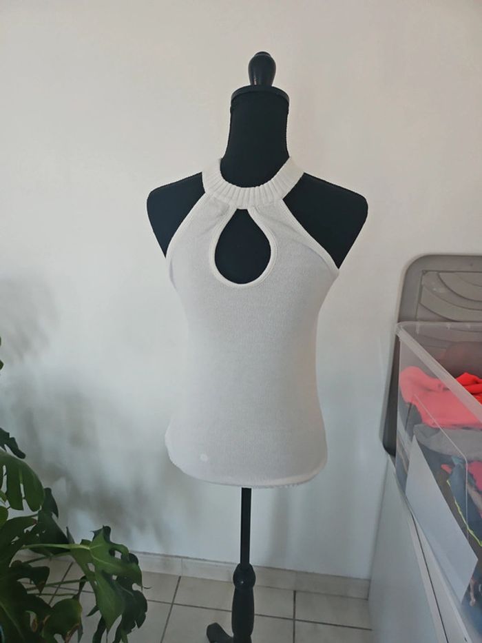 🗂 Catégorie: #amandinebontaille40lfemme 📏 Taille: L (3) ®️ Marque: No Excuse 🎨 Colories: Blanc 🌻 Thème/motif: Uni 🧶 Composition: 80% acrylique, 20% polyamide 💐 Détails supplémentaires: Débardeur ras le cou avec bijou en plastique au niveau du thorax. Pas de photos portées. Mis en vente le 29.04.25