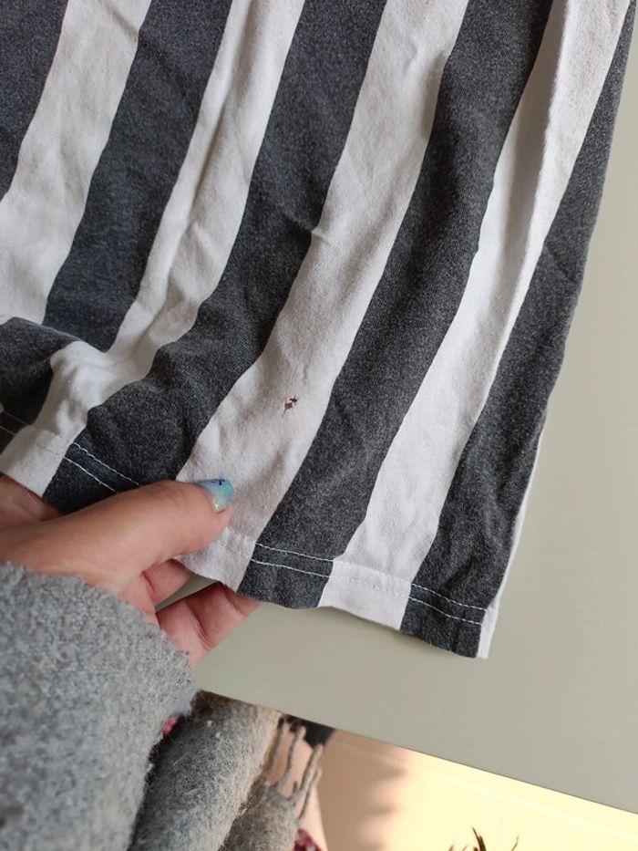 Voir photos les deux dernières deux petits trous qui ne se voit pas à l'arrière du t-shirt