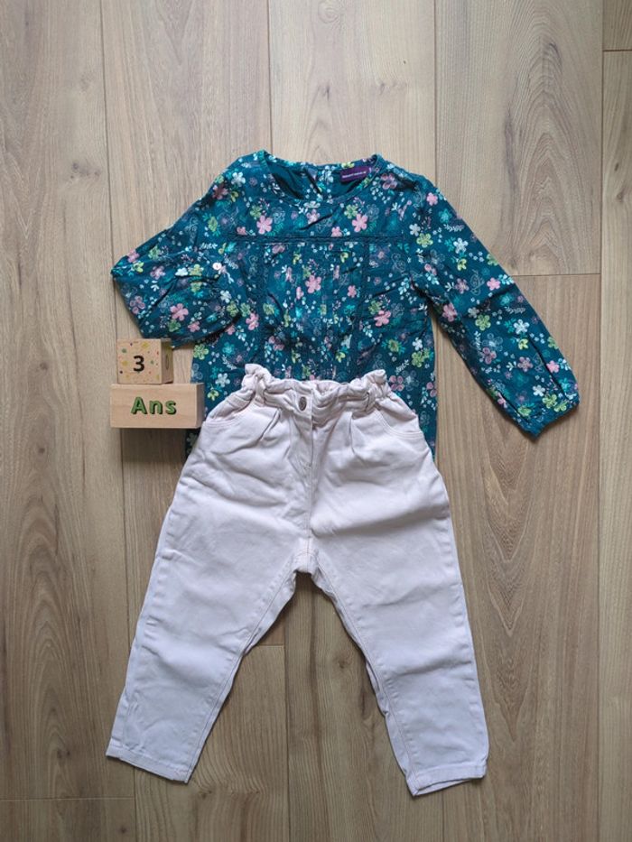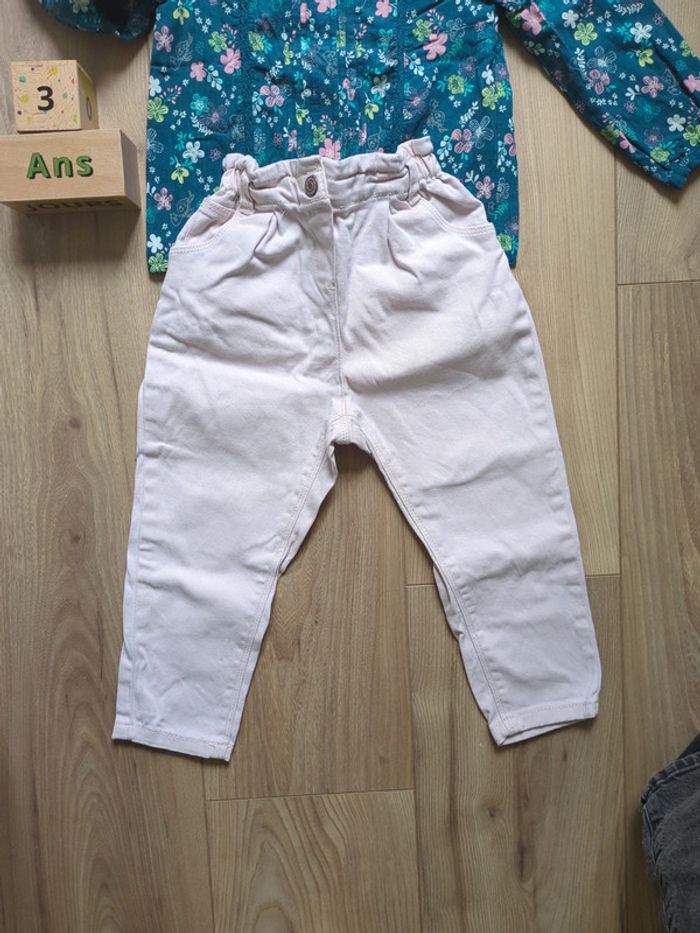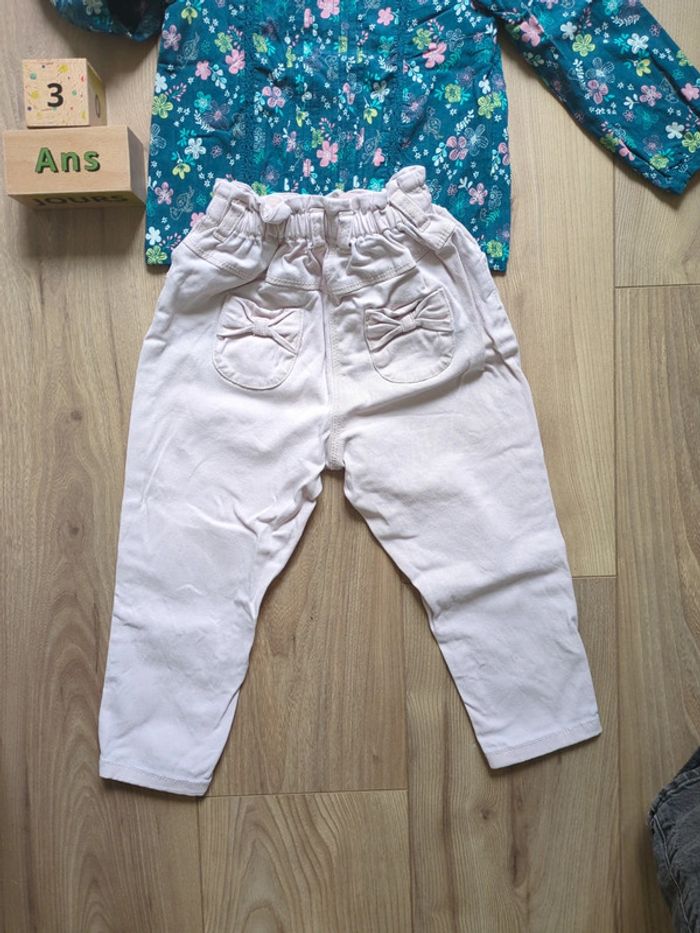 Pantalon leger tape à l'oeil TAO 36 mois rose pale, taille élastique. Haut manches longues sergent major offert avec car il manque 2 boutons. #jmilene3ans