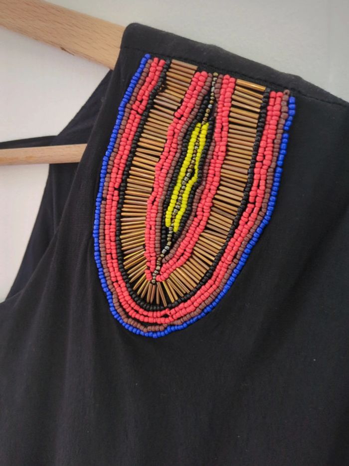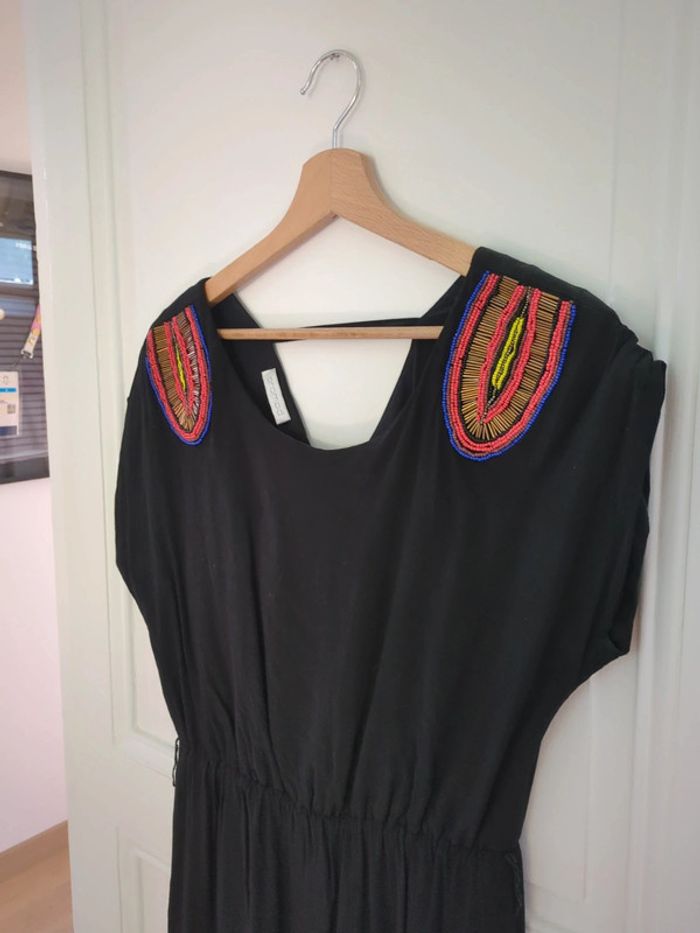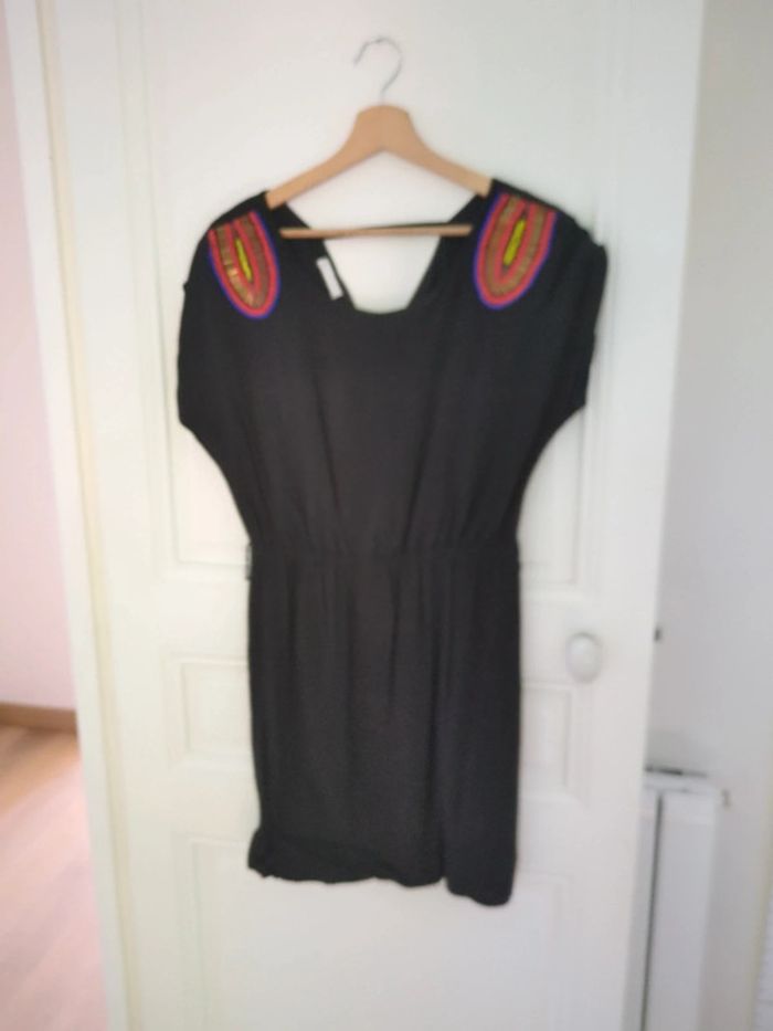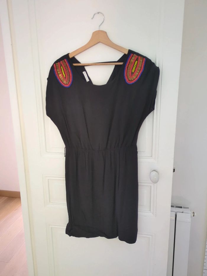 Robe Promod noire à perles sur les manches courtes. Étiquette de taille coupée mais correspond à un 36. #jmilenerobe