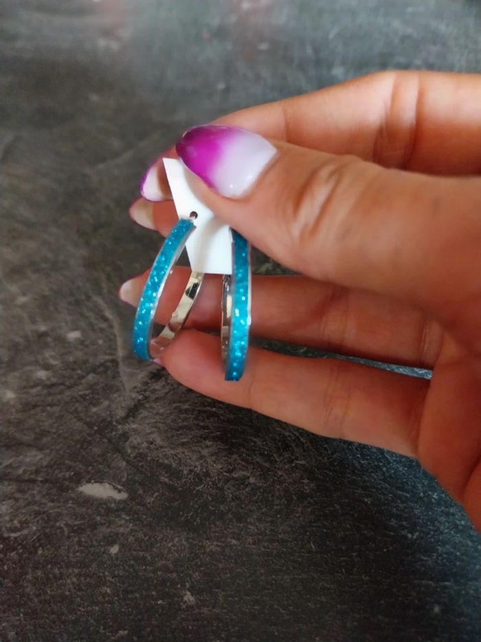 Boucle d'oreille créole bleu à paillette neuf femme #cindynicolazzidivers