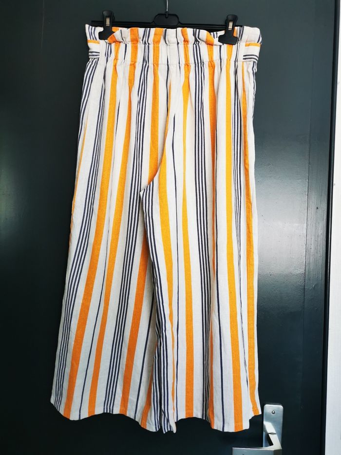 Pantacourt large rayé C&A taille 38 en lin, environ 89cm de longueur