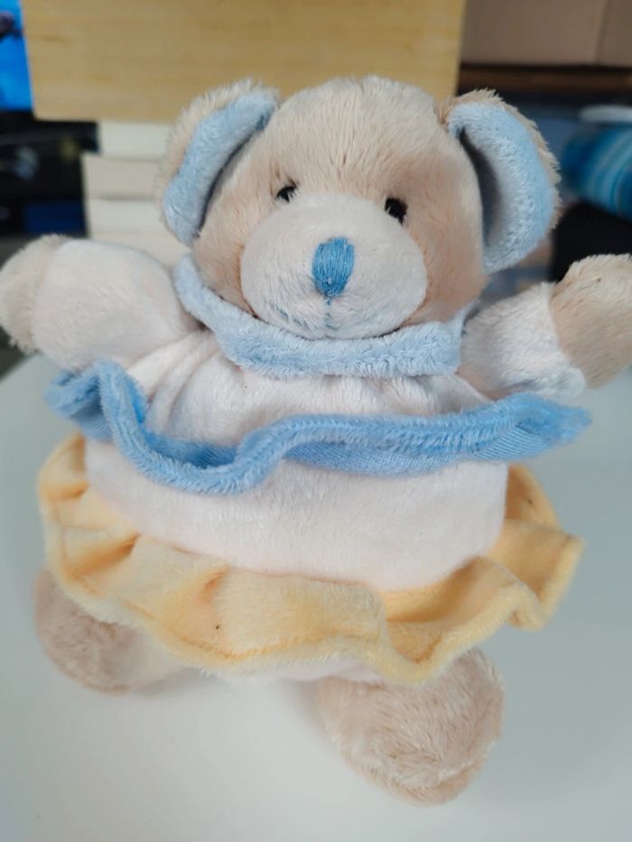 Peluche doudou boule Beige bleu jaune Babynat Très bon état voir photos