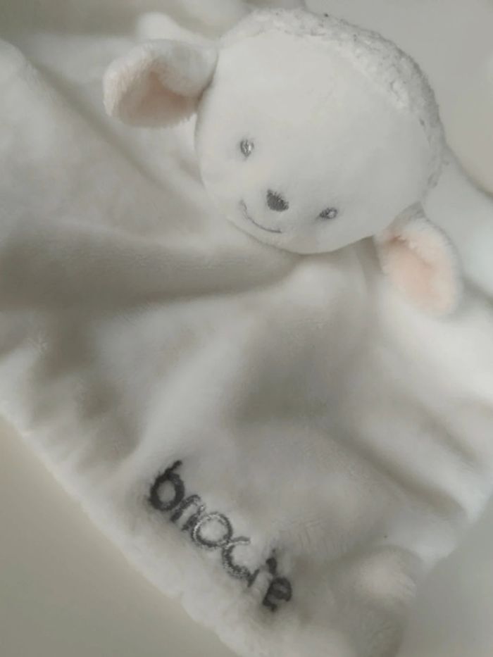 #awlbdoudou Peluche doudou plat mouton blanc brioche Bon état, fourrure tête affaissée voir photos
