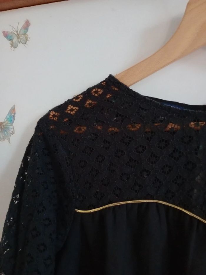 Dentelée sur la partie haute au-dessus de la poitrine avec un liseret doré