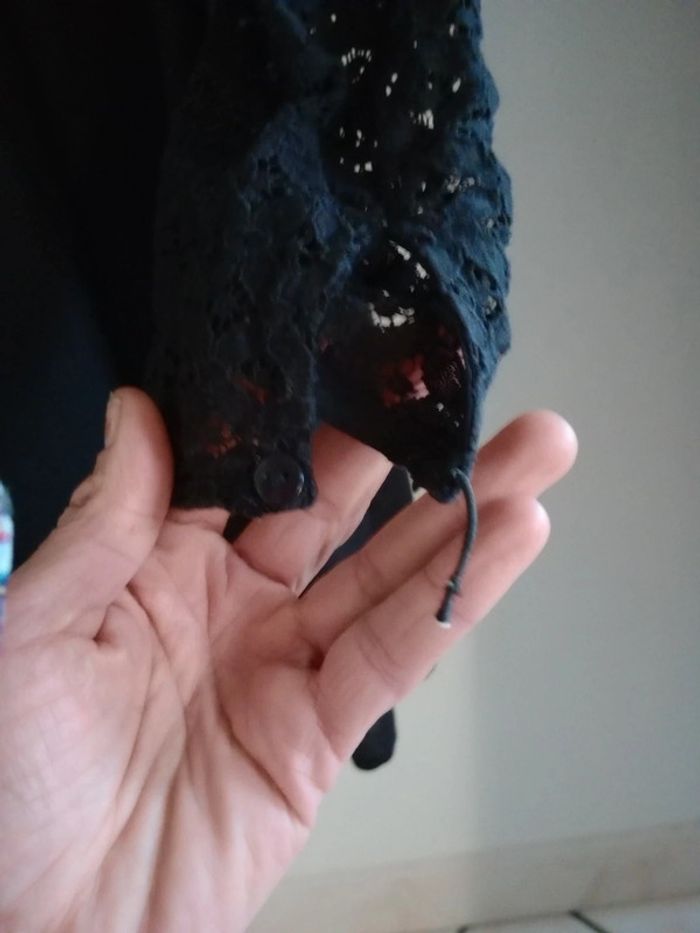 sur la manche de droite, la petite élastique que l'on met autour du bouton est cassé voir dernière photo