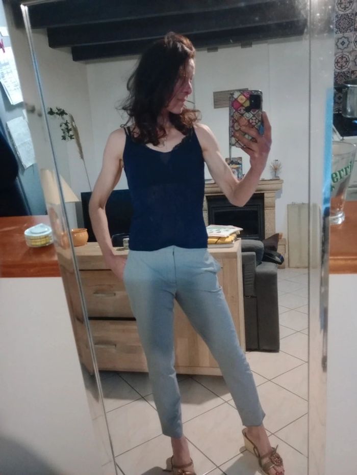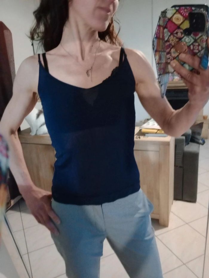 Top 👍🏻...ce top😍 Semi transparent Col v Fines bretelles 100% viscose Aisselle à aisselle 40cm Longueur 57 cm #carineleray_femme_36