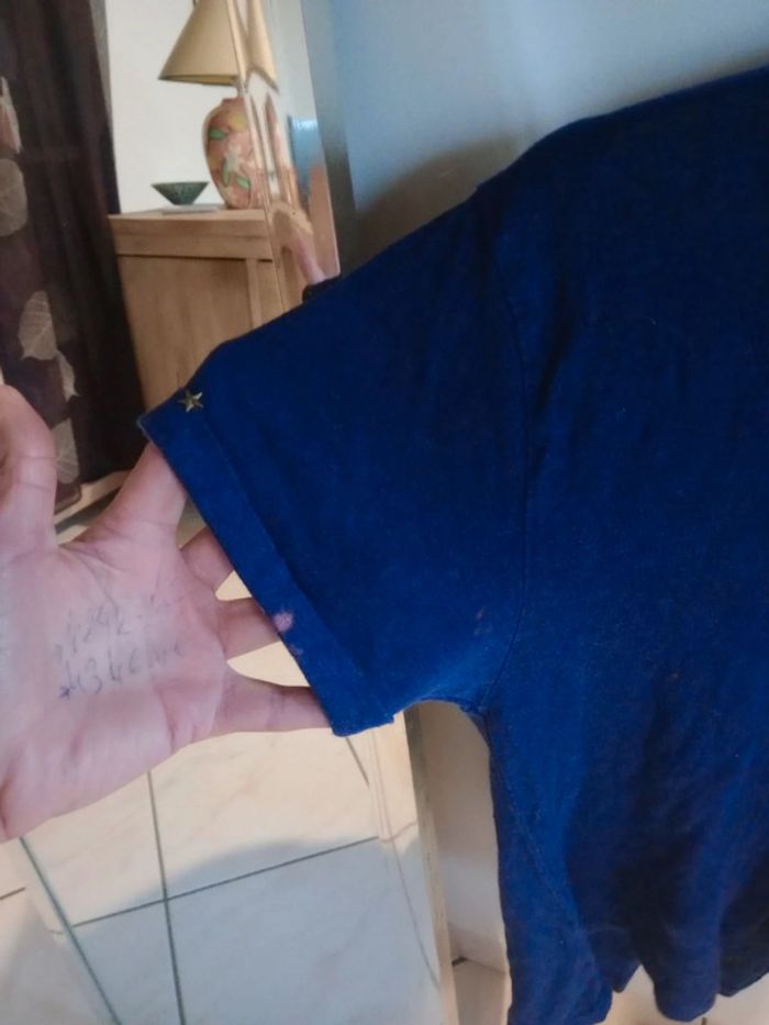 Sur la manche droite présence de petites marques de javel (recto et verso ) voir les trois dernières photos