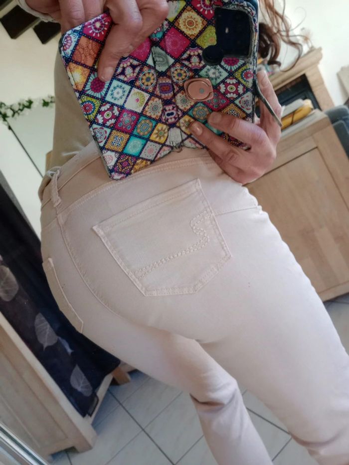 Superbe pièce, impeccablement entretenue 😘 Très confortable on tient 3 % de la Stan Taille basse Présence de broderies( dont étoiles) au niveau des poches à l'arrière La coupe est très féminine #carineleray_femme_36