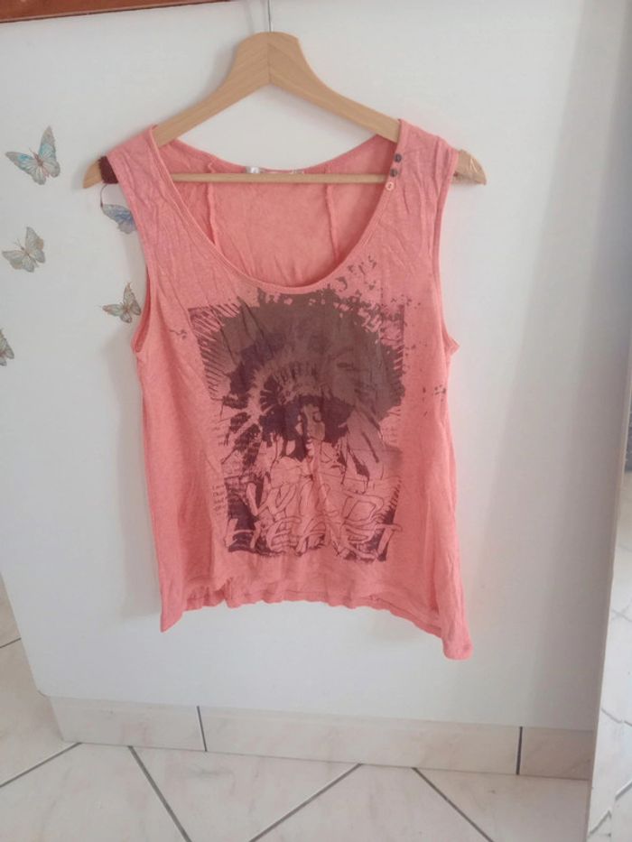 Débardeur avec motif de femme " wild heart" Plus d'étiquette matière ni marque Épaule 37 cm longueur 60 cm Présence d'une petite ombre voir dernière photo La couleur est plus intense que sur les photos #carineleray_femme_38