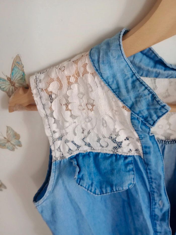 Tunique femme 38 dentelé  bleu type Jean  c62 - photo numéro 9