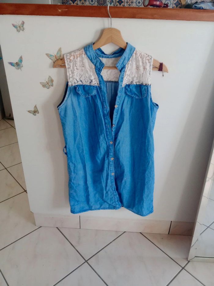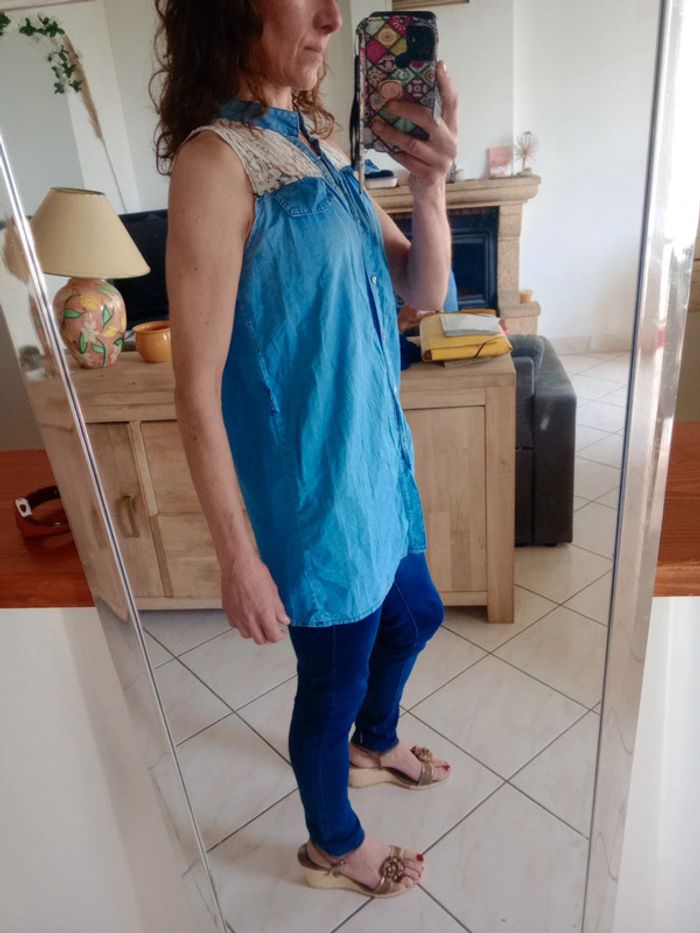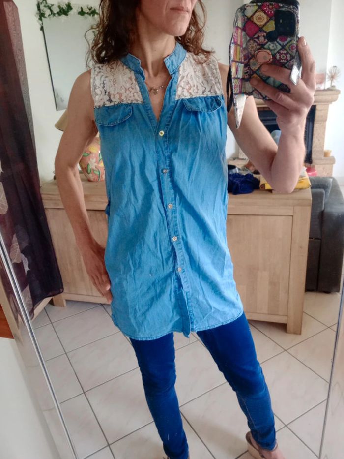 Tunique femme 38 dentelé  bleu type Jean  c62 - photo numéro 1