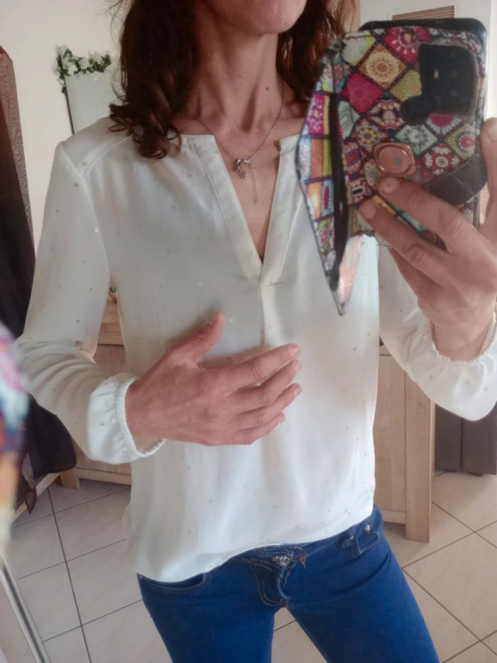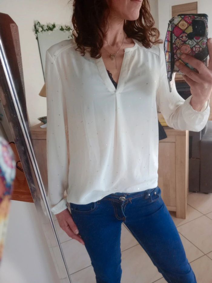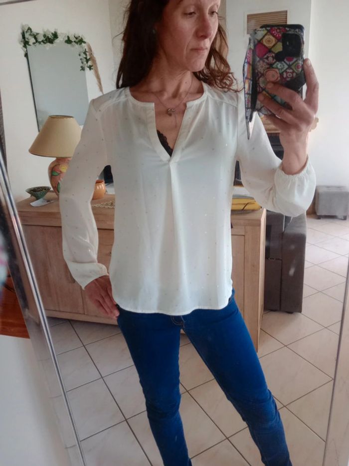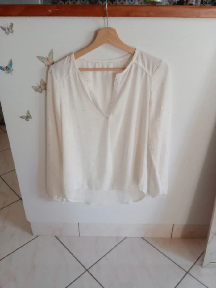 Blousefemme 40 blanc cassé point doré p - photo numéro 9