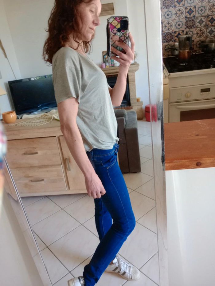 Esprit cool décontracté Col large rond Incurvé dans le bas type jacket Impeccablement entretenu aspect neuf 😍 Doux Indiqué taille XS c'est plutôt un M Longueur la plus grande 71 cm la plus petite 52 Épaule à épaule 38 cm environ difficile de dire dans la mesure où il n'y a pas de démarcation entre la manche et le t-shirt Bonne qualité car contient du lyocell : Le Tencel, appelé aussi Lyocell, est une matière textile artificielle écologique. Elle est fabriquée à partir de cellulose, c'est à dire de pulpe de bois, le plus souvent issue des arbres d'eucalyptus que l'on trouve dans les forêts de pins par exemple, dans des zones à humidité modérée à forte( matière coûteuse de par son procédé de fabrication). https://www.marques-de-france.fr/definition/lyocell/ #carineleray_femme_38