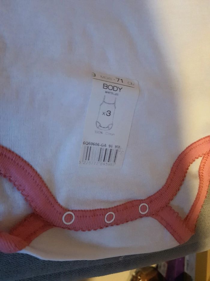 Lot de 3 bodies Absorba fines bretelles taille 9 mois neuf avec étiquettes - photo numéro 3