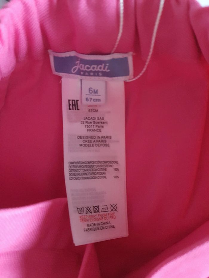 Short en coton rose Jacadi taille 6 mois neuf avec étiquettes - photo numéro 3