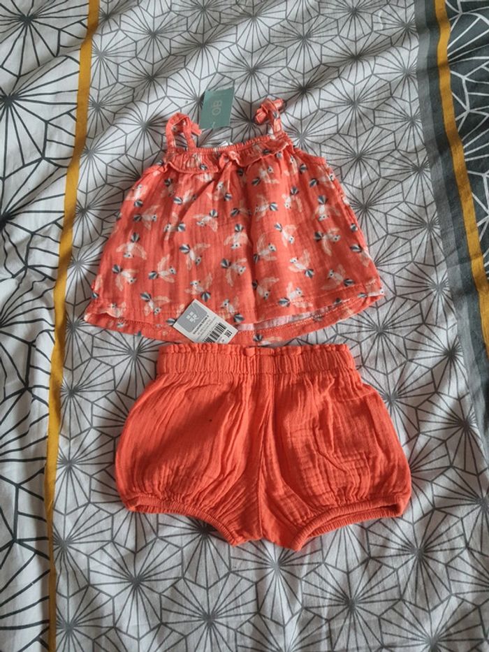 Débardeur et short en gaze de coton Obaïbi taille 6 mois neuf avec étiquettes Retrouvez mes autres articles avec le #cyrille90taille6mois 🤑Réductions automatiques sur les lots activées 350750