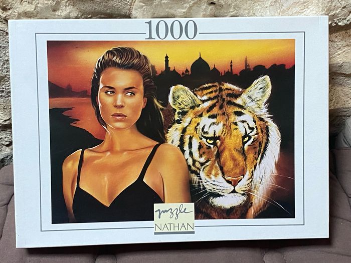 Puzzle 1000 pièces complet, très bon état. La femme et le tigre, Die Frau und der Tiger, De Vrouw en de Tijger, Woman and Tiger Nathan, collection fantastique. Dimensions : 49 x 66,5 cm Très bon état #Iva32_Puzzles