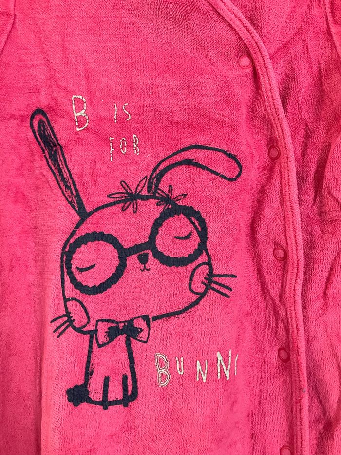 Pyjama rose vif avec boutons pression devant, 76% coton 24% polyester, de marque Early days, taille 9-12 mois État satisfaisant