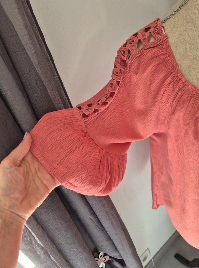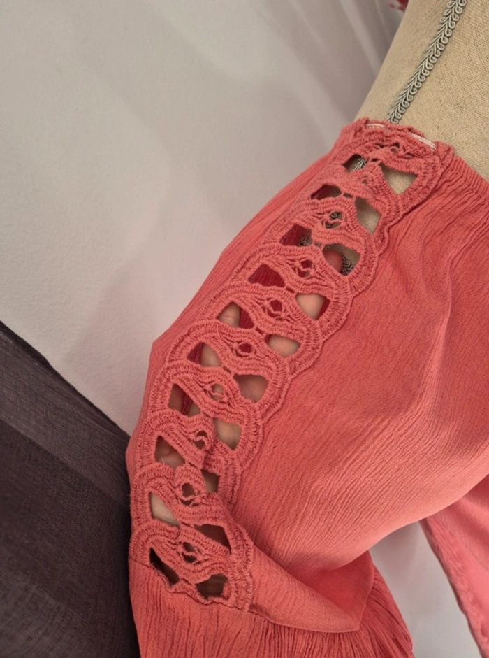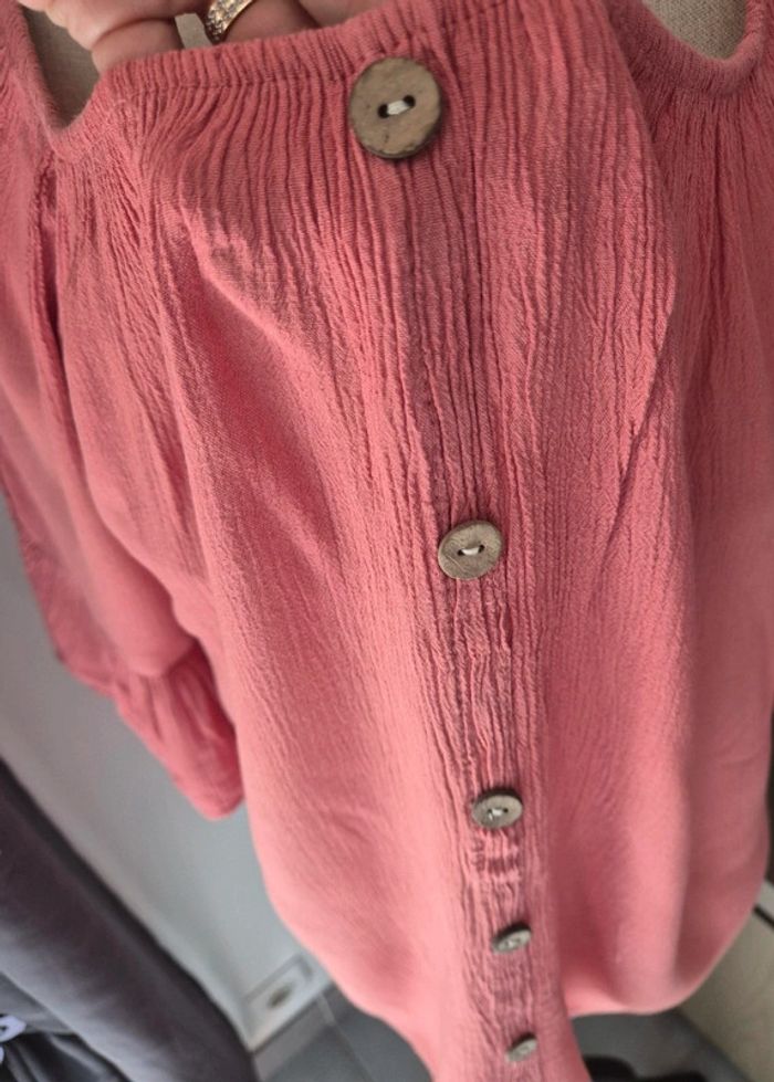 Très belle blouse fluide Boutons décoratifs Jolies manches 3/4 à trous Vieux rose Taille unique En très bon état #virginie2220femme38 #virginie2220femme40 #virginie2220femme42