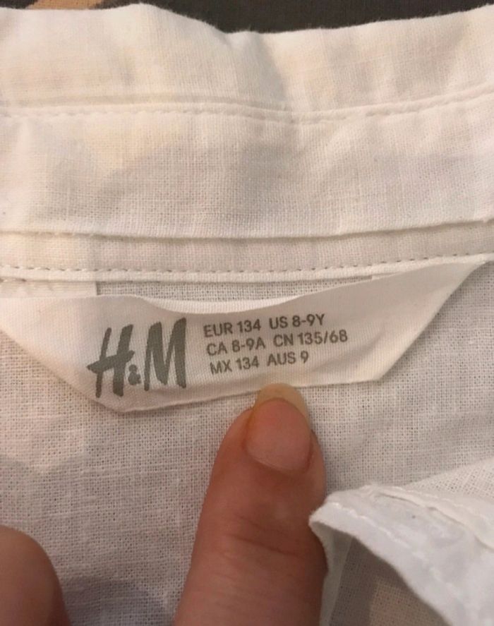 Chemise blanche H&M 8/9 ans Look chic assuré ! Chemise manches longues en lin et coton (55% lin / 45% coton), légère et stylée. Parfaite pour une cérémonie ou un look d'été classe. État impeccable, comme neuve ! #virginie22208ansgarcon #virginie22209ansgarcon