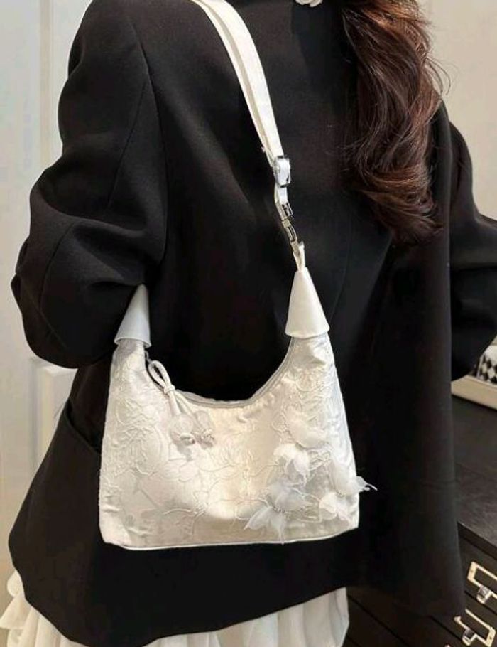 Sac à main blanc avec motif  brodé - photo numéro 1