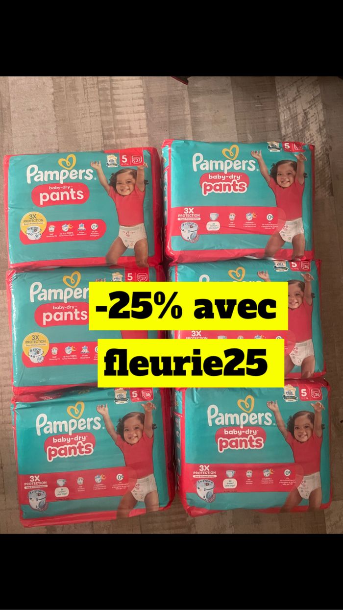 Le lot de six paquets de couches Pampers baby dry pants taille 5