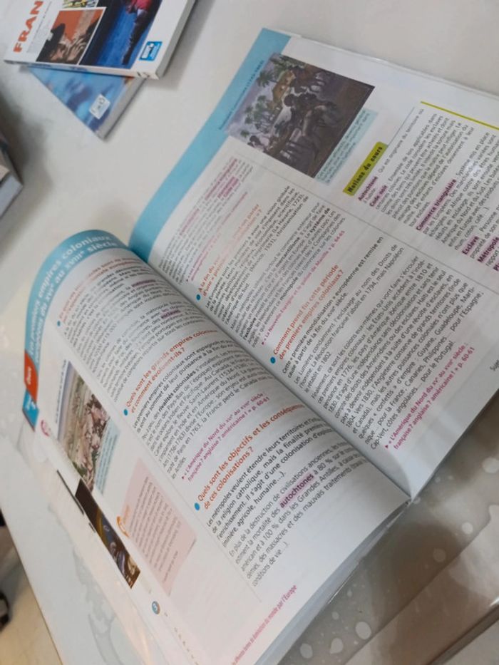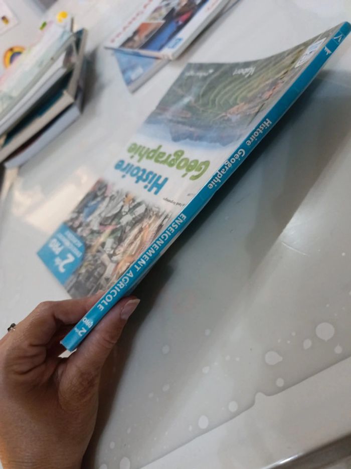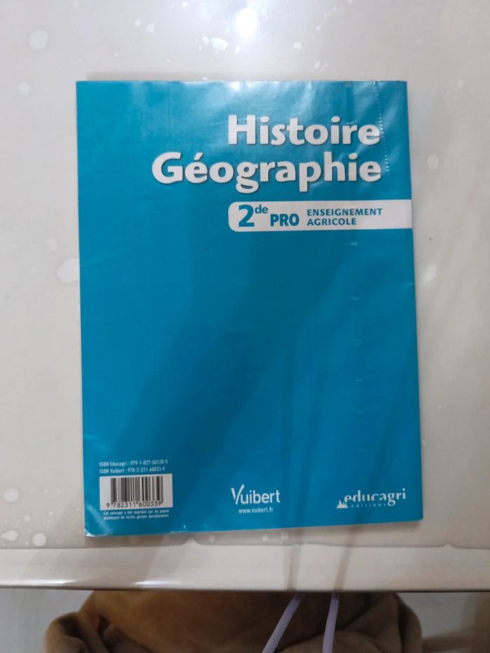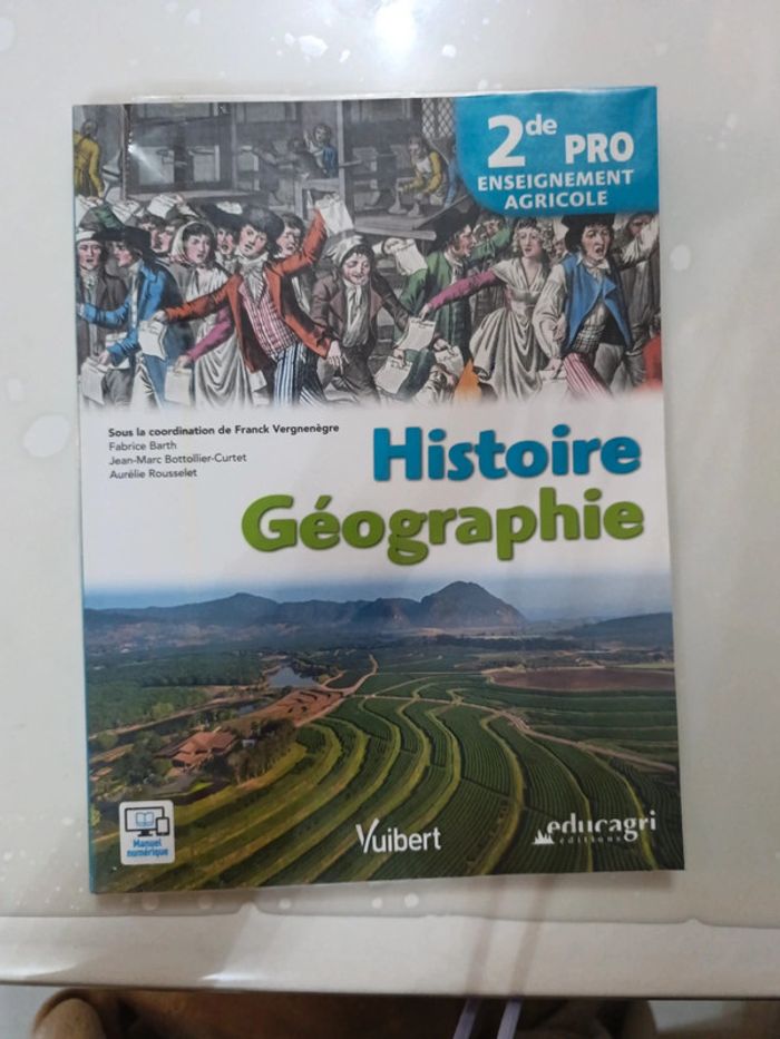 Manuel d'histoire géographie Niveau seconde enseignement agricole Livre en très bon état pour ne pas dire neuf Protéger par un plastique de couverture qui lui a été abîmé comme vu sur les photos Les angles sont en très bon état visibles sur photos de même chaque tranche du manuel L'intérieur est impeccable Valeur neuf 24€ actuellement sur Amazon Nombreux manuels a vendre dans mon dressing Possibilité de faire un lot pour réduire les frais d'envoi et réductions actives