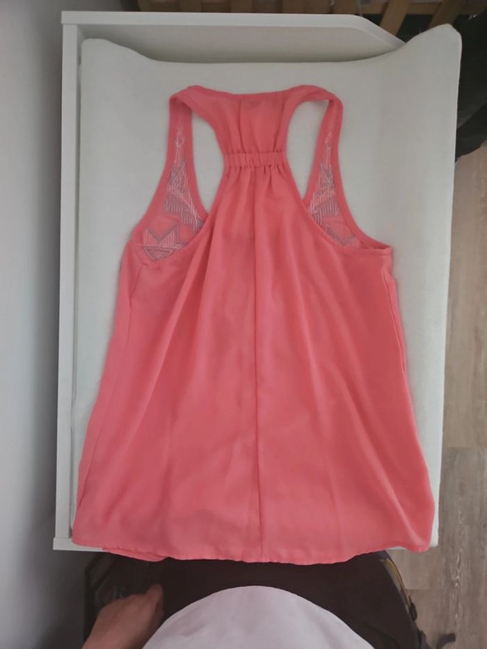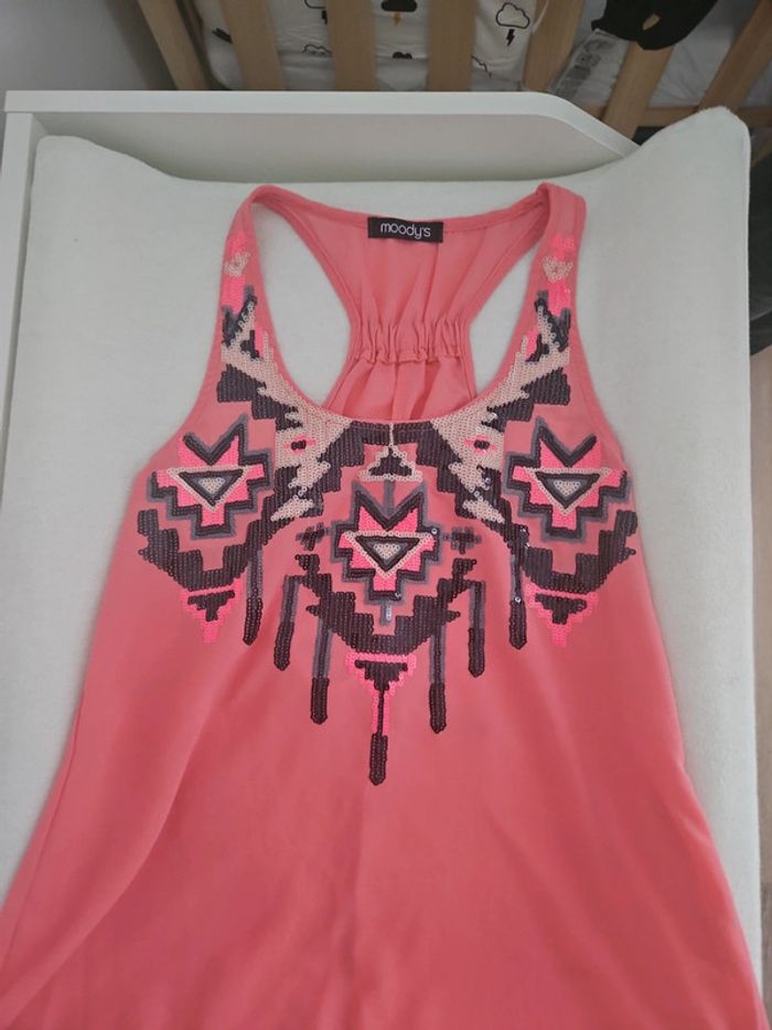 Debardeur rose a sequins femme taille unique très bon état porte 2 fois largeur épaules 19 longueur 64 cm