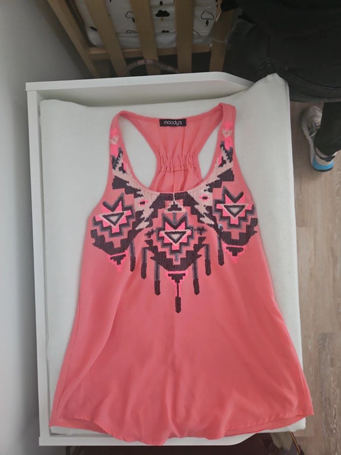Debardeur femme rose dessin sequins - photo numéro 1