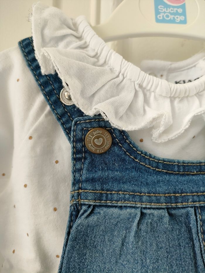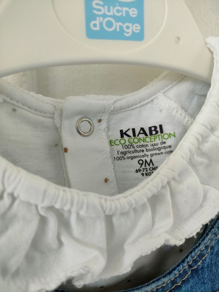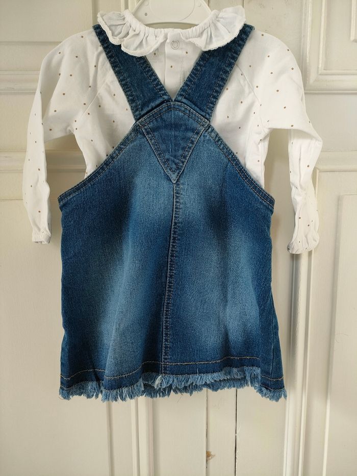 Ensemble robe salopette haut ML 9 mois Excellent état Kiabi