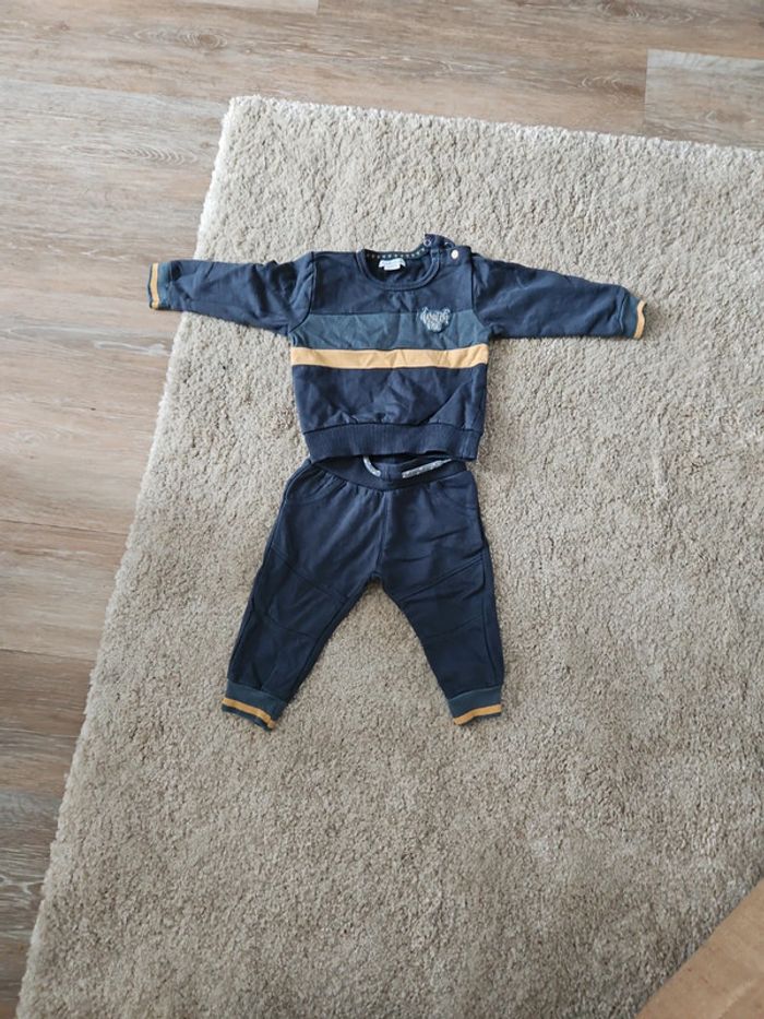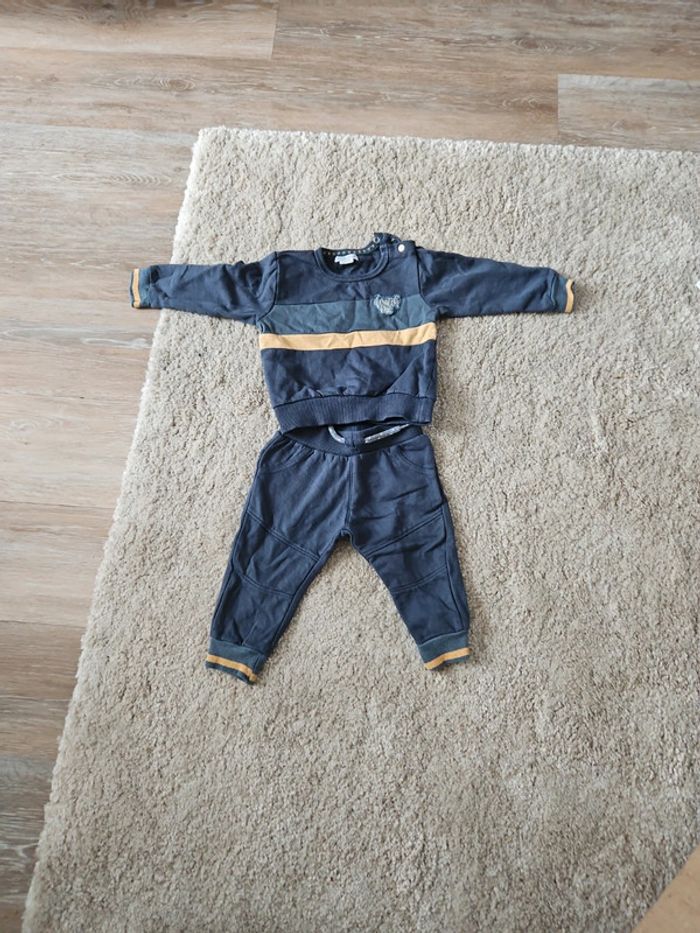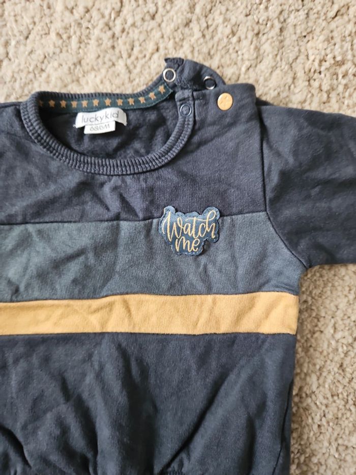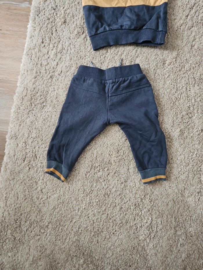 Ensemble jogging bebe taille 6mois 68 cm très bon etat marque Lucky kid couleur gris vert moutarde