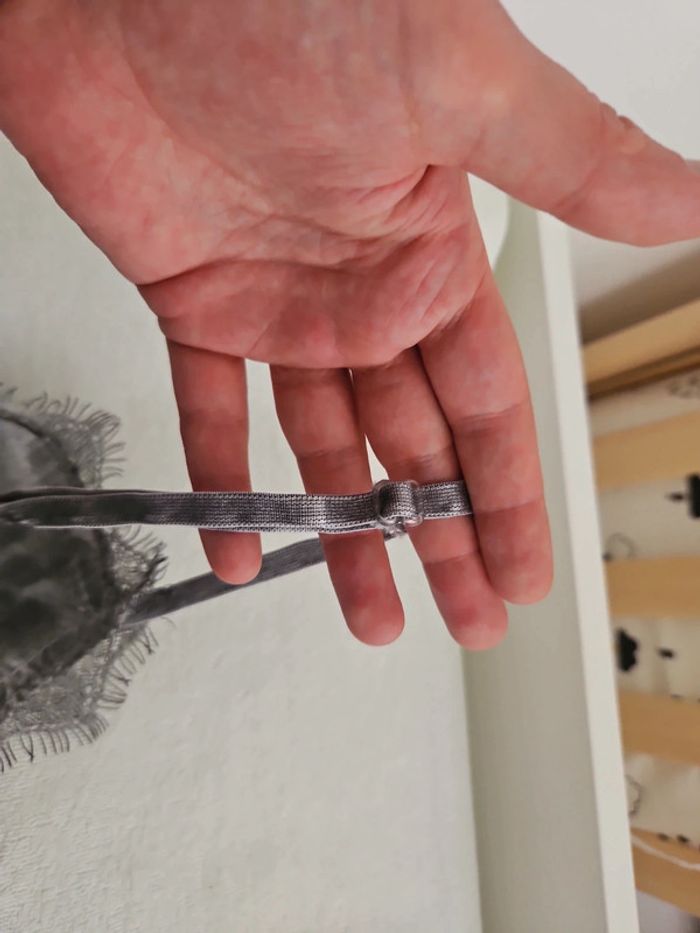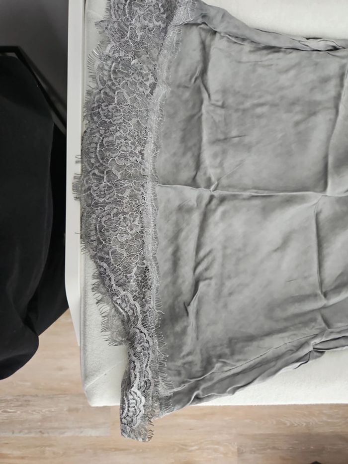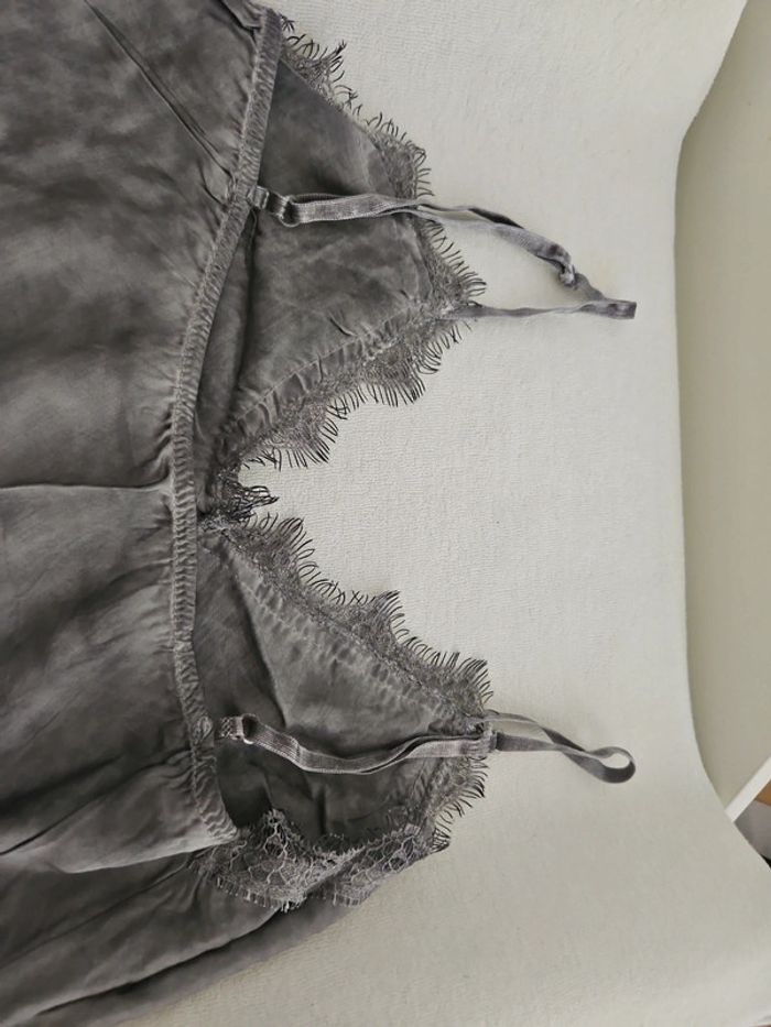 Debardeur gris femme léger à dentelle taille unique bretelles réglables jamais porté