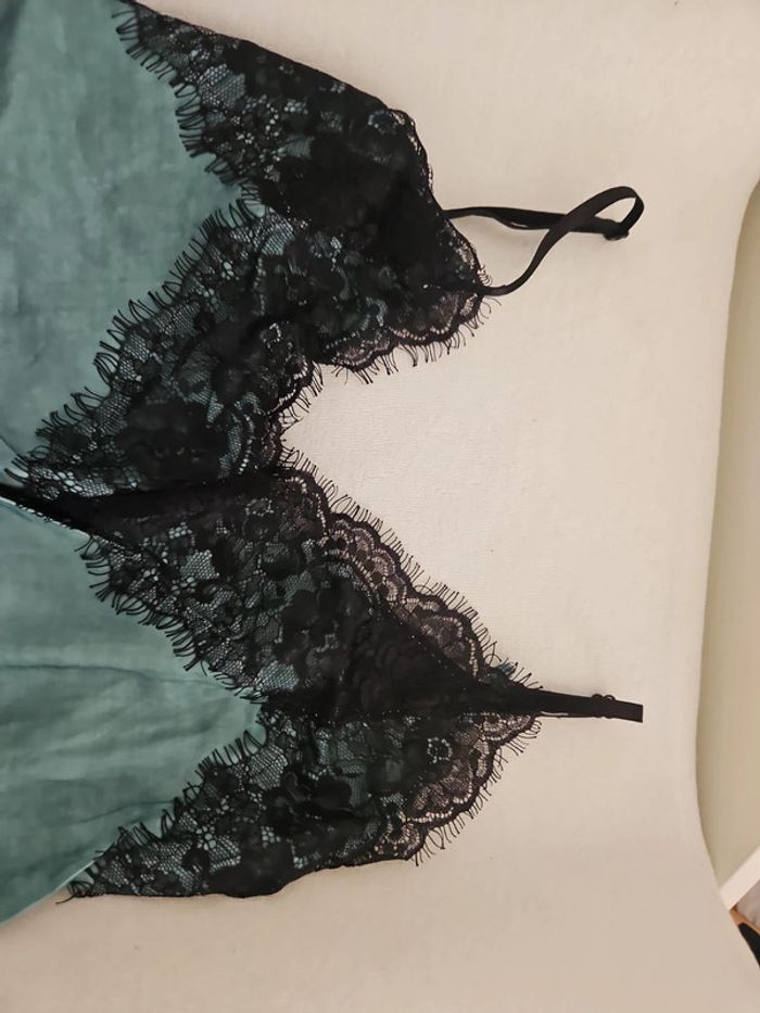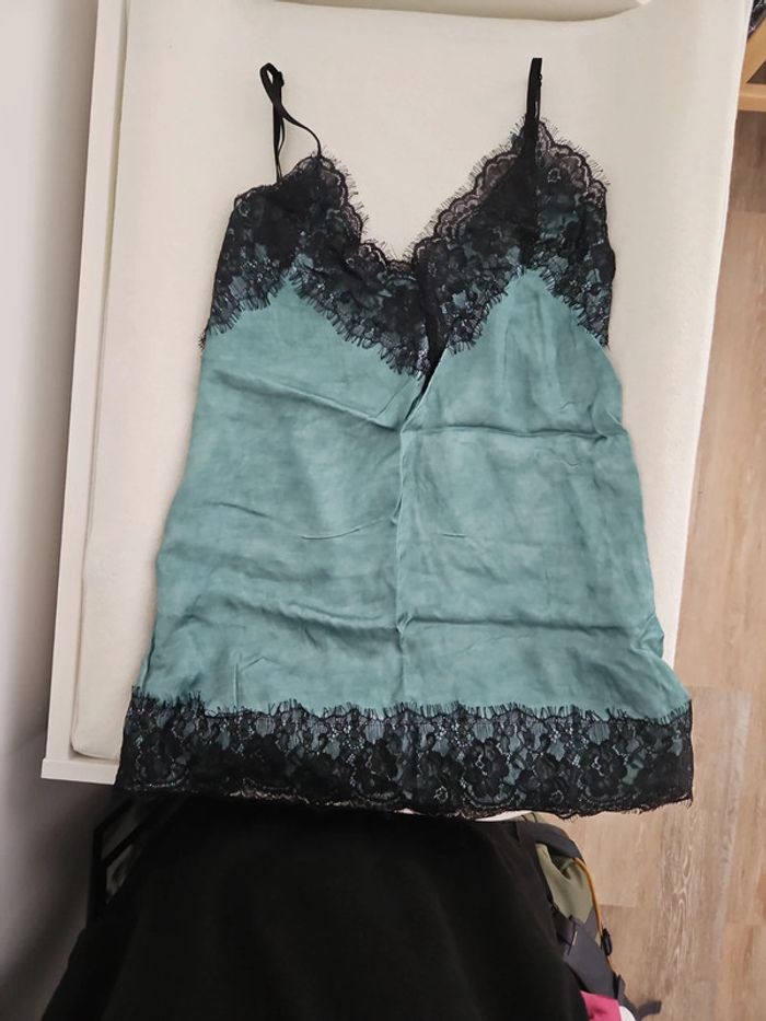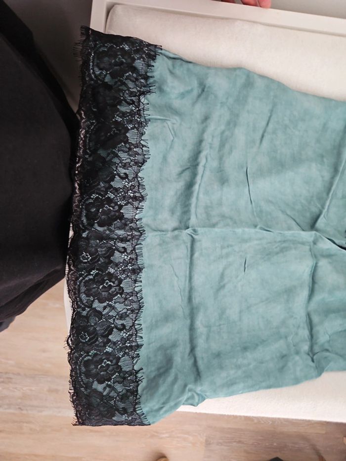 Debardeur femme vert dentelle noir taille unique bretelles réglables très bon etat