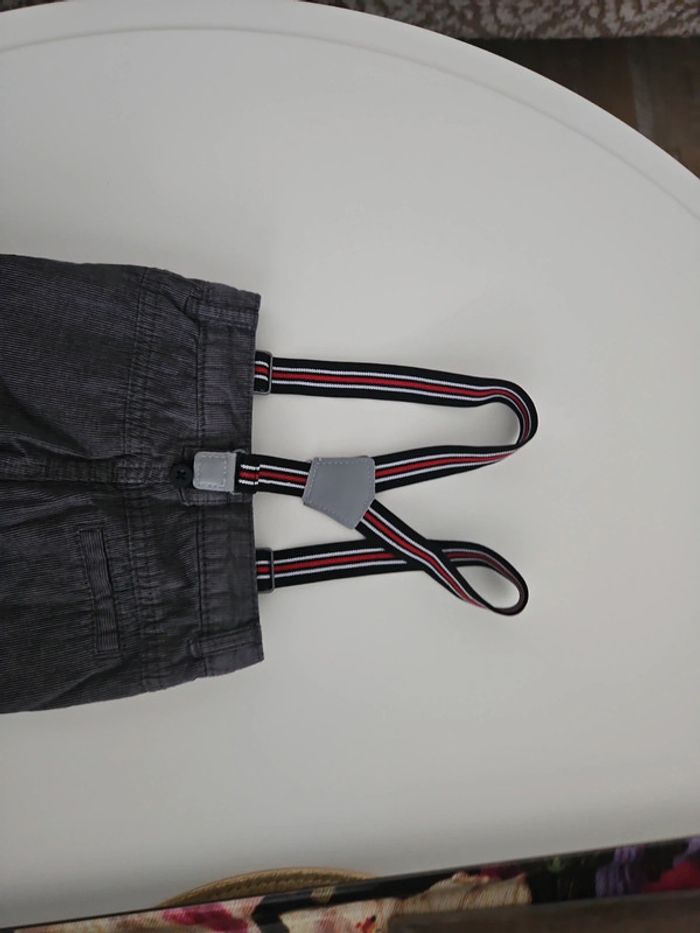 Pantalon bébé gris rayé à bretelles amovible intérieur polaire taille 3 mois 60 cm marque orchestra bon etat jamais porté