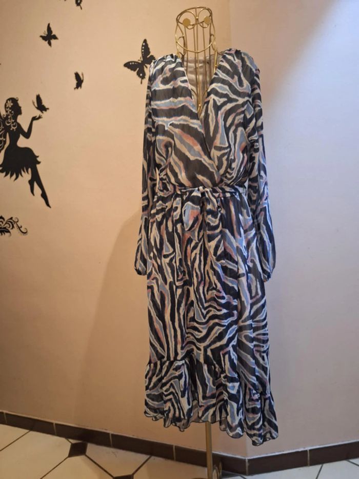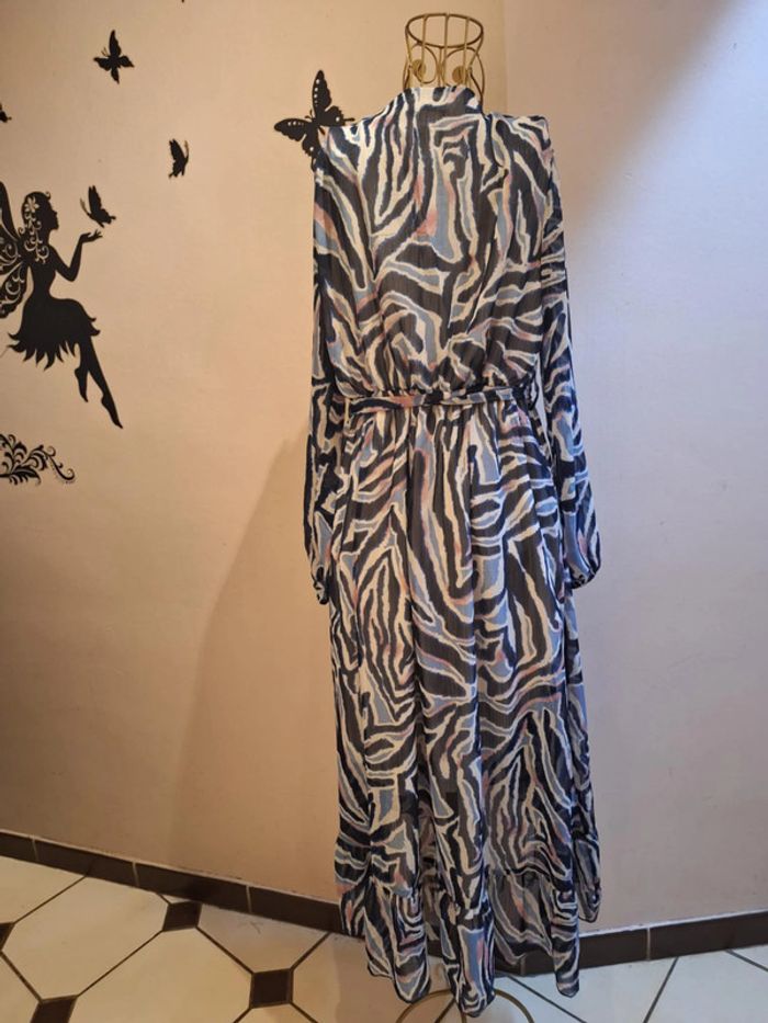 Robe imprimée en mousseline & fils argentés donnant un effet scintillant très subtile - asymétrique : avant 100 cm et dos 125 cm - coupe cintrée par une taille élastique qui s'adapte à votre morphologie & nouée par une ceinture ton sur ton - doublée - taille S/M idéale pour les tailles 36 & 38 - état sans défaut ps : je ne fais pas de photo portée #robelongue #robelongueimprimée #robeolongueasymétrique
