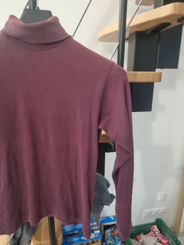 Sous-pull 16 ans,tout coton, violet, col bord dentelé #somara66fille16ans