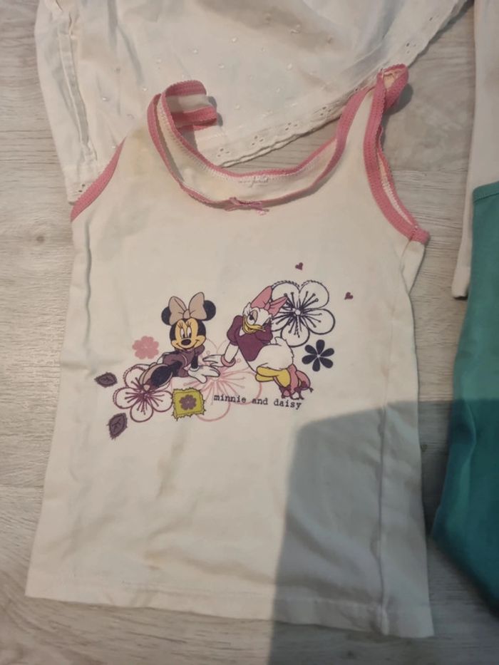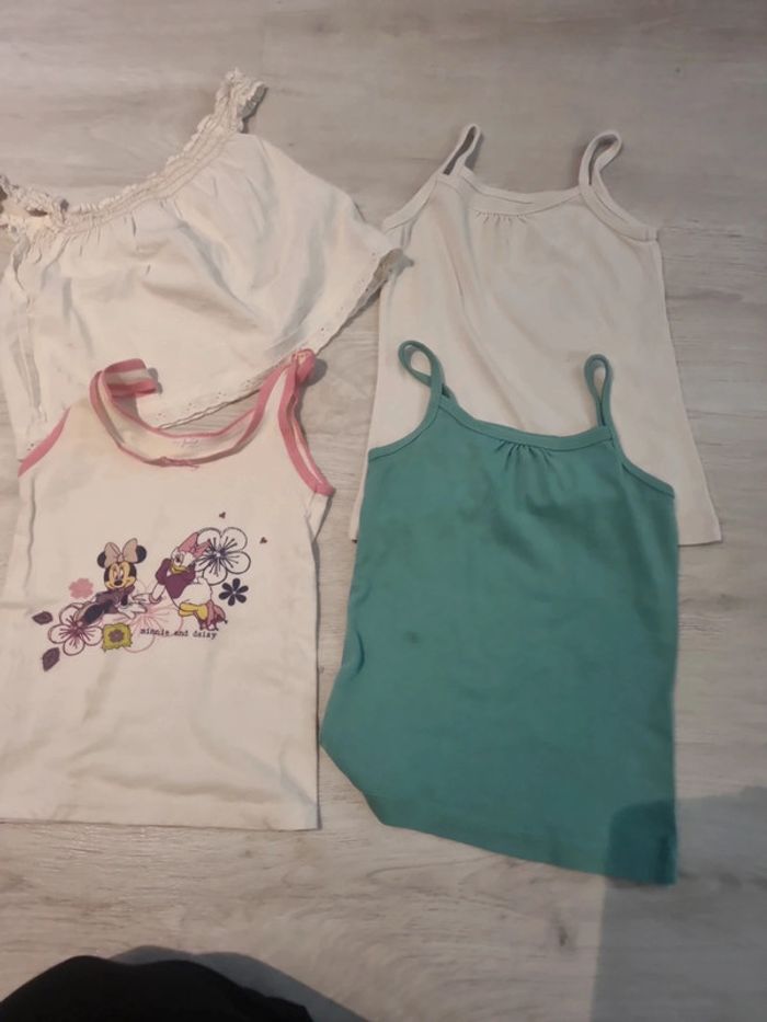 Lot 4 debardeurs 4 ans, dont 1 épaules nues, 1 disney, 1 blanc et 1 vert avec tâche #somara66fille4ans