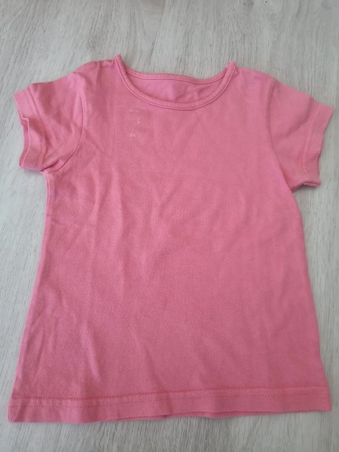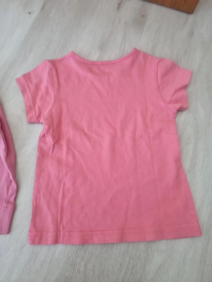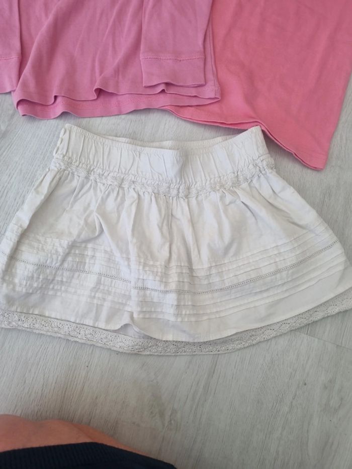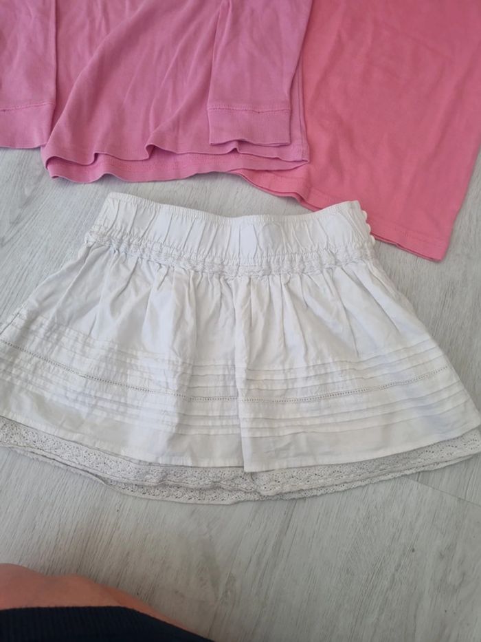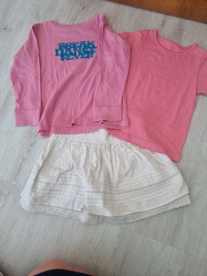 Ensemble 4 ans composé d'un Tee-shirt manches courtes rose avec tâche devant, 1 Tee-shirt manches longues rose et 1 jupe évasée blanche tex #somara66fille4ans