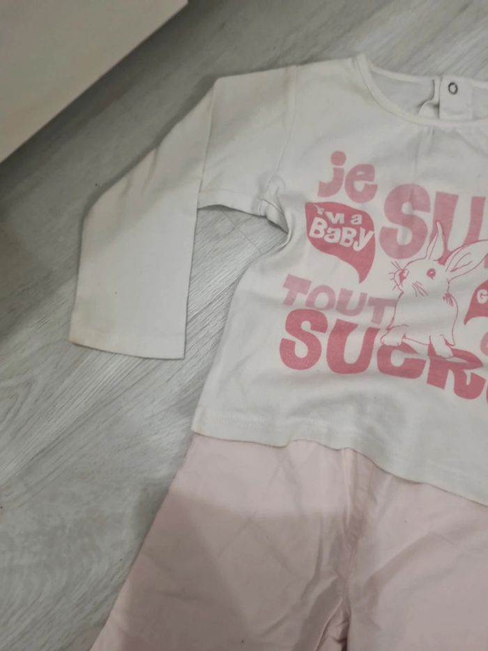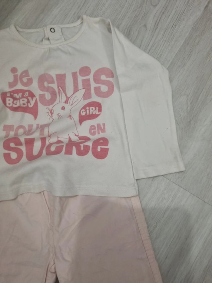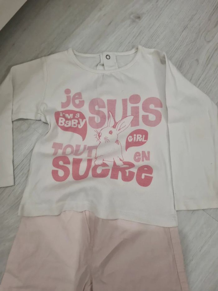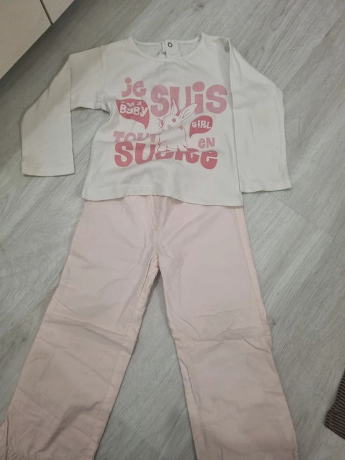 Ensemble 3 ans, 1 Tee-shirt manches longues lapin et 1 pantalon toile doublé, 3 ans. Bouts des manches salis #somara66fille3ans