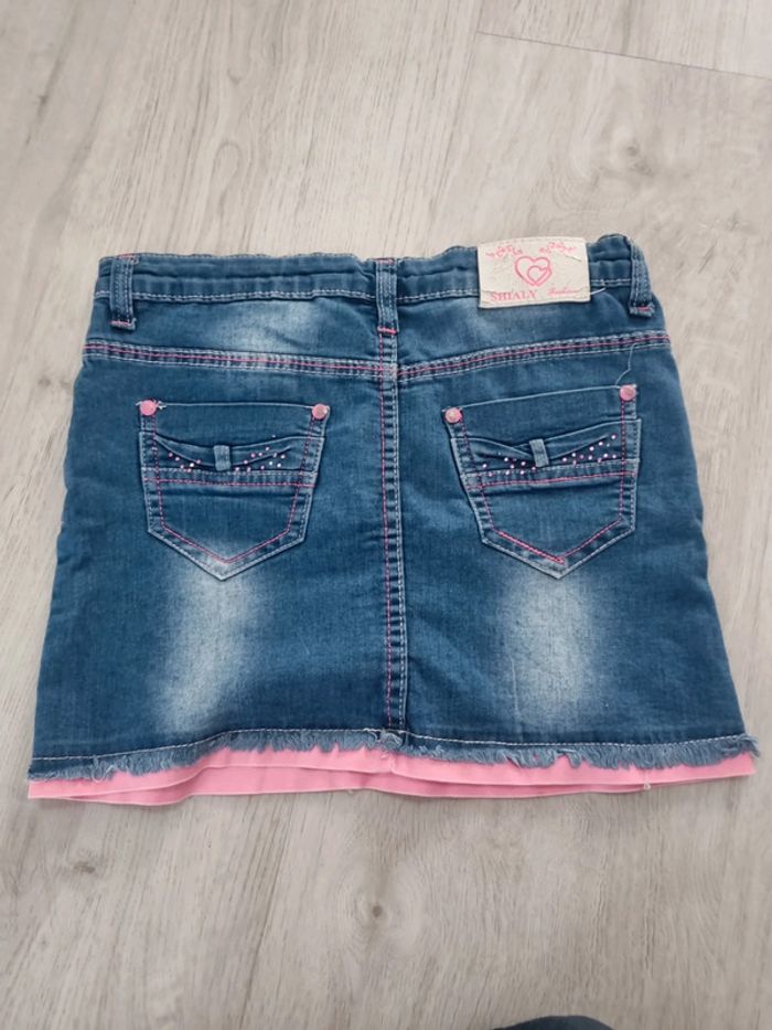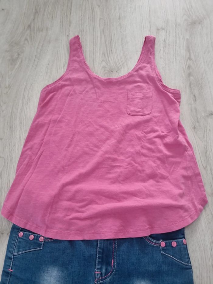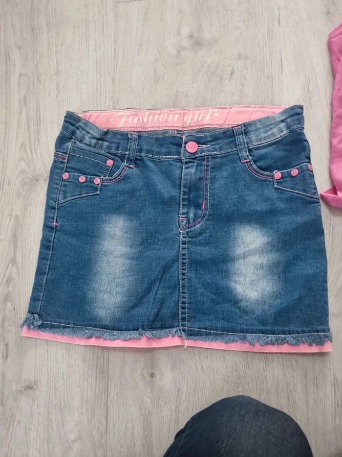 Tenue été composée d'une jupe en jean courte 10 ans, avec liseré rose et débardeur rose YD 10-11 ans coton #somara66fille10ans