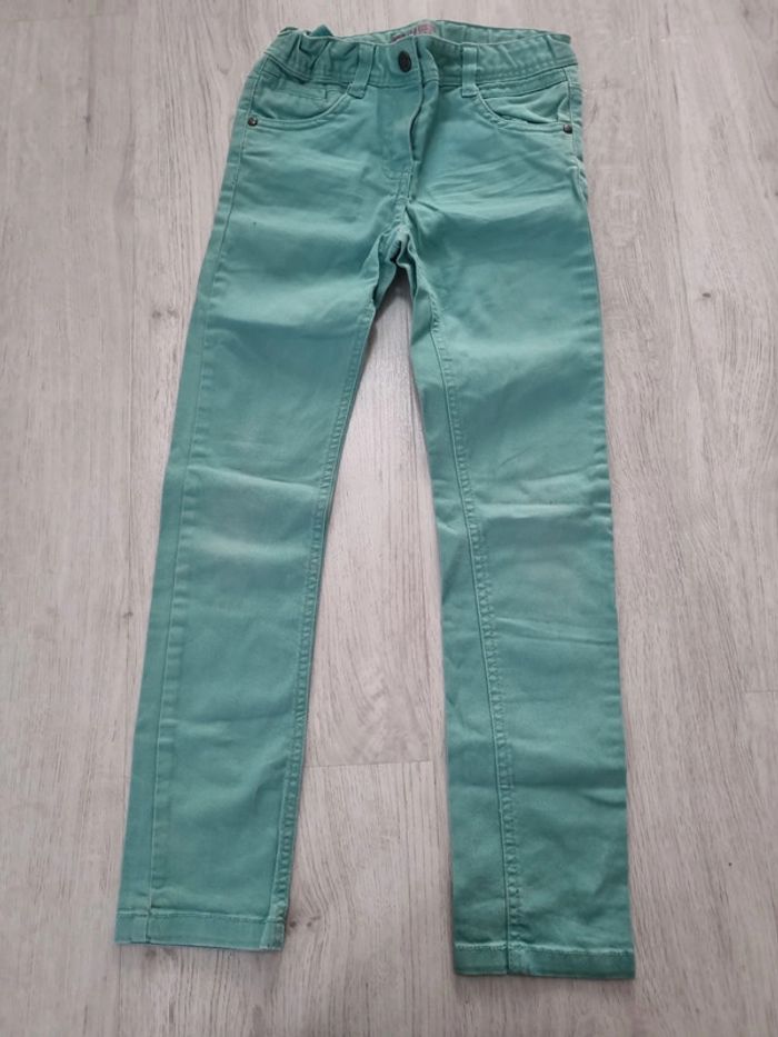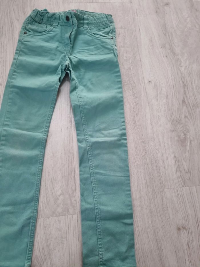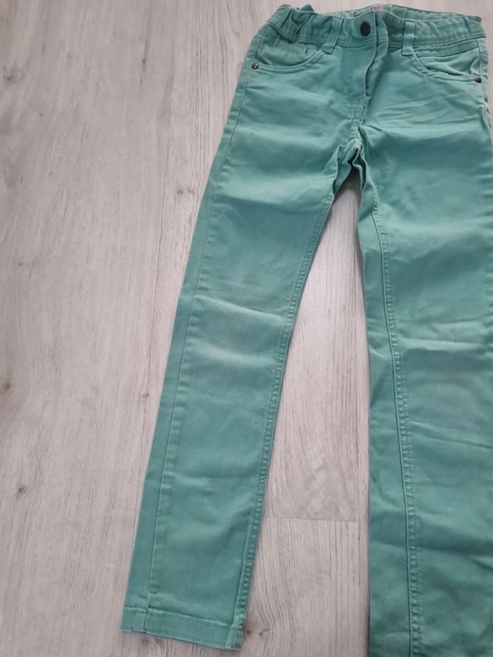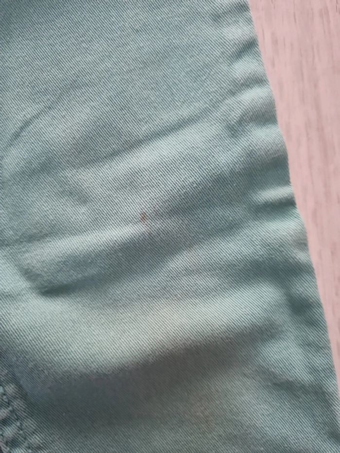 Jean turquoise slim 8 ans coton kiabi, petite tâche au genou #somara66fille8ans