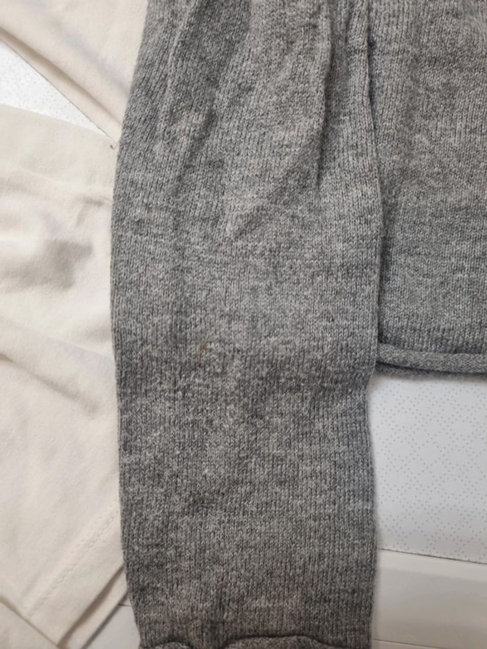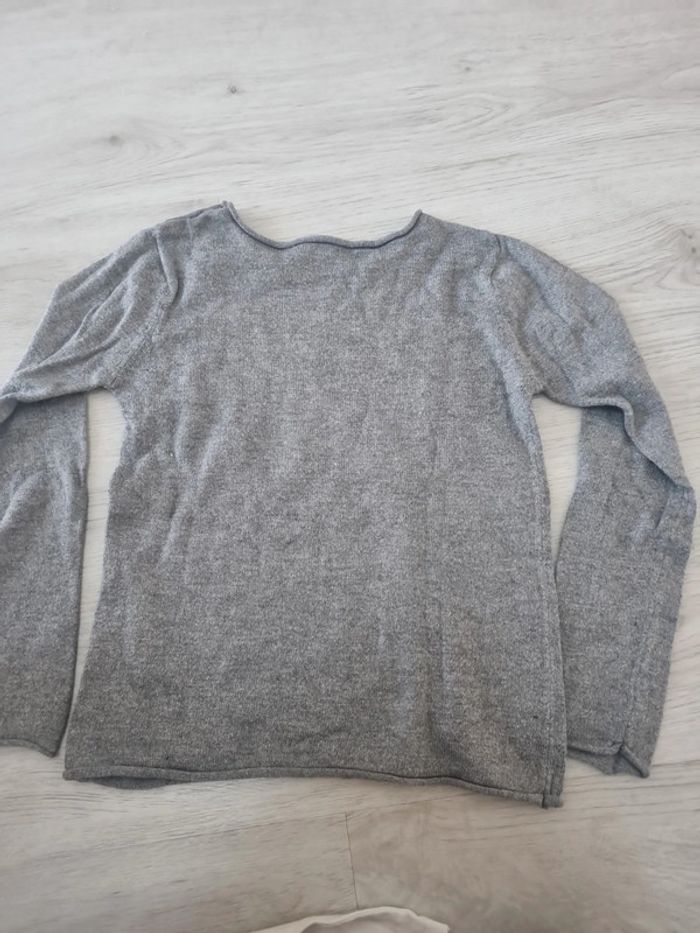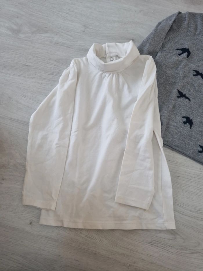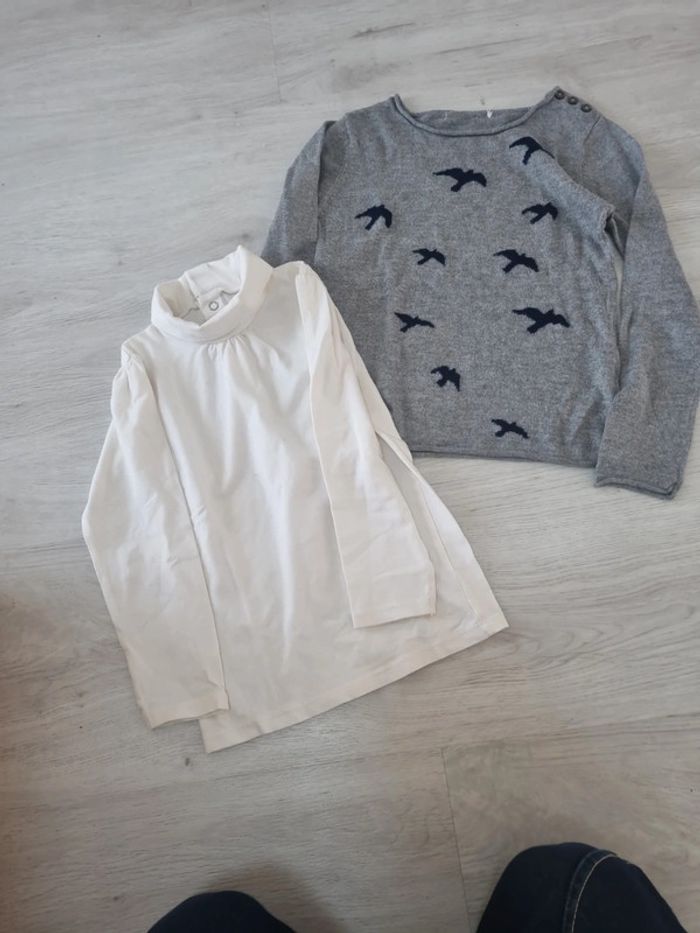 Lot mi-saison composé d'un pull léger et 1 sous-pull blanc, 5 ans. 2 tâches légères sur le pull gris #somara66fille5ans