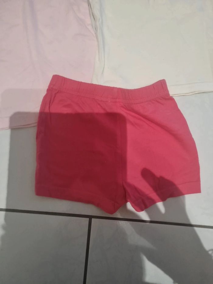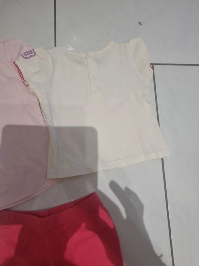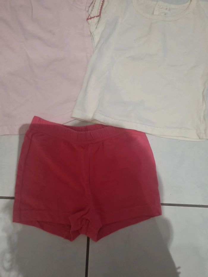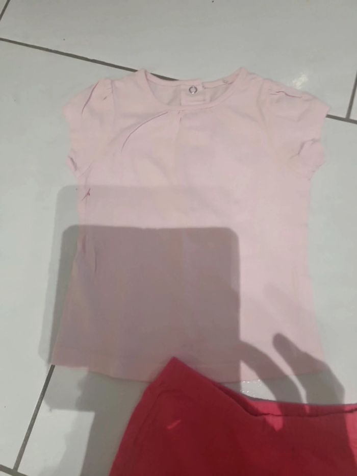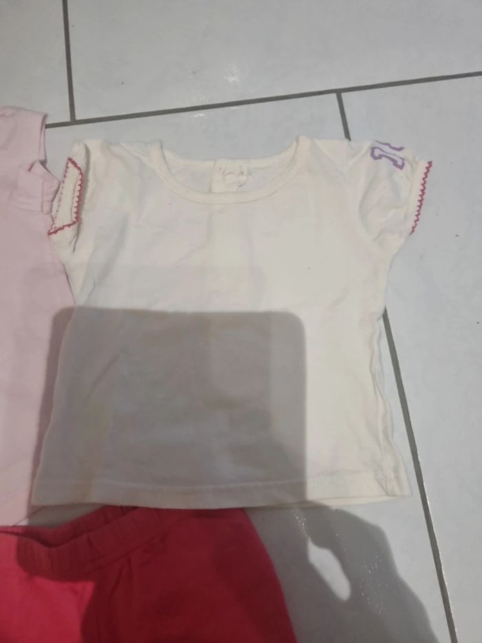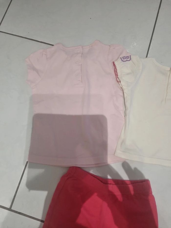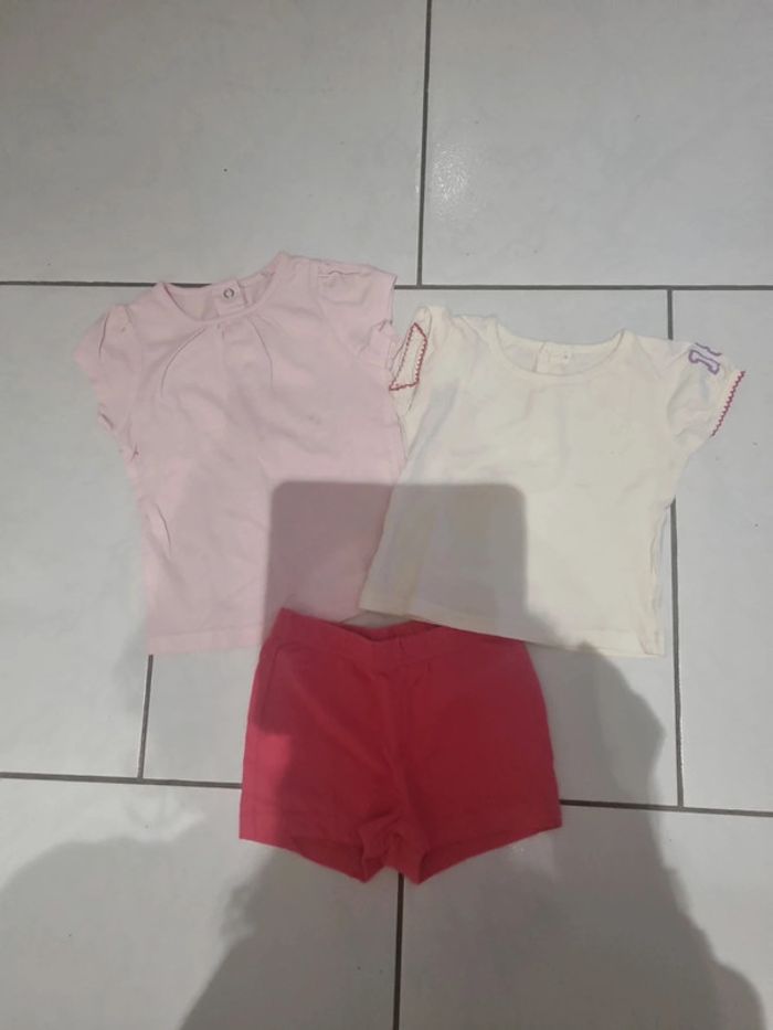 Lot été 12 mois composé de 2 tee-shirts ( le rose a une tâche) et 1 short coton elastiqué #somaea66fille12mois